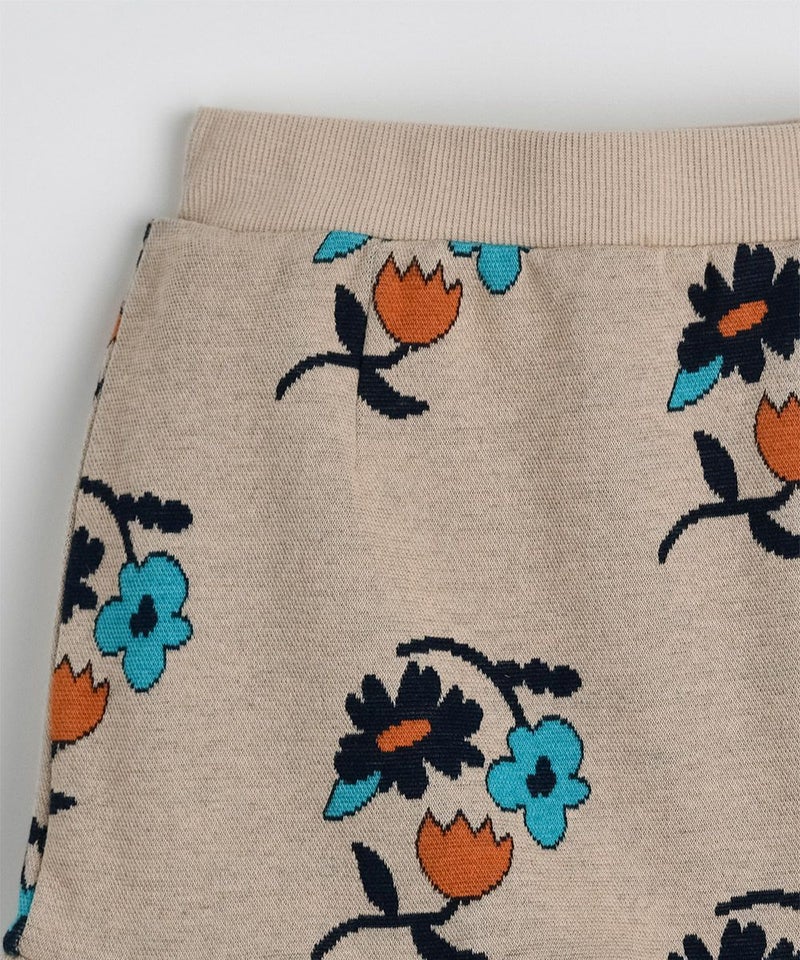 高級感溢れる大きな花柄が引き立つスウェットスカートセットアップ。スカートはフリルがポイントのミディアム丈で、セットアップでも単品でも活用度が高いアイテムです。