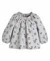 ガチョウモチーフのトップスと、ジャカードボトムスのセットアップ。首元はゴムのため、着脱しやすいアイテムです。