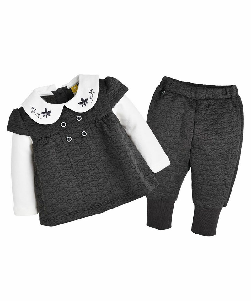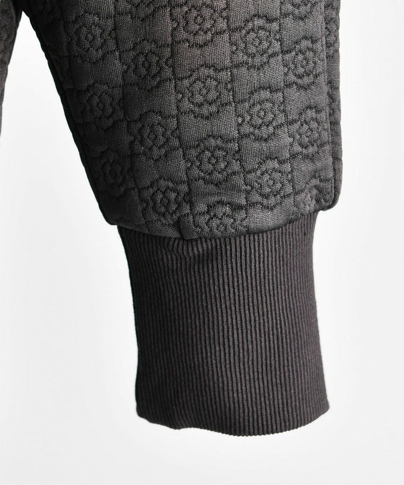 ユニークなフラワー厚手のジャカード素材のセットアップ。ベストのレイヤード型デザインで端正なスタイリングを演出でき、楽に着用できるアイテムです。