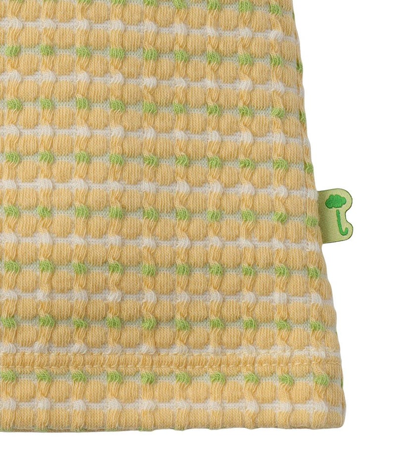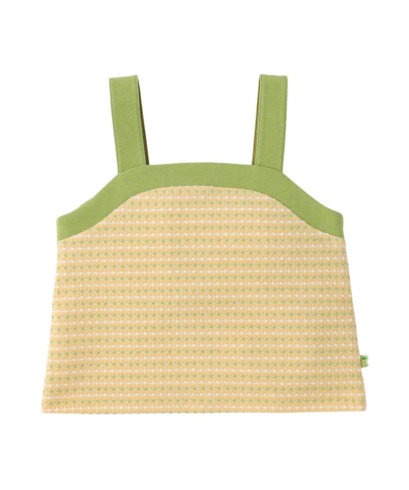 イエローとグリーン配色の可愛いジャカードが特徴のベストセットアップ。ビスチェデザインのトップスはコーデ次第でセットアップでも単品でも大活躍♪春には長袖と、初夏までは半袖Tシャツとレイヤードし、デイリーで実用性に優れたアイテムです。