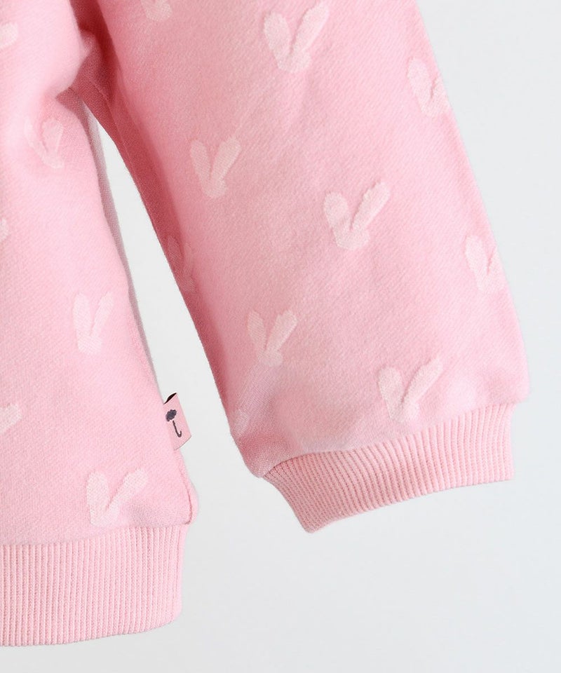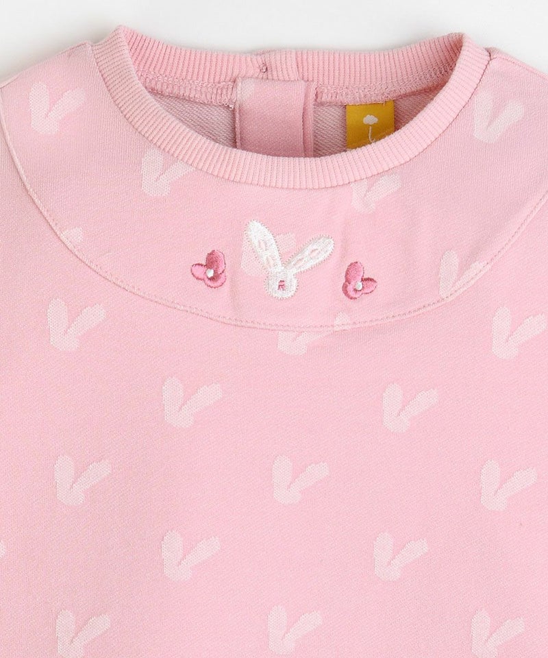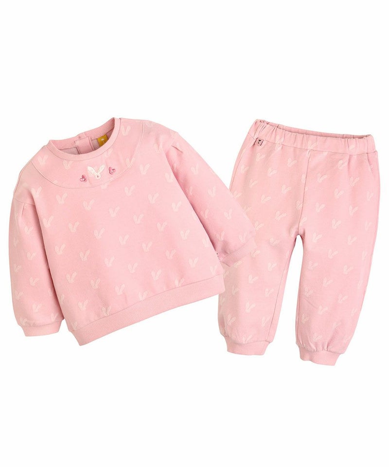 かわいいウサギの総柄のスウェットトップスとリブロングパンツのセット。スウェットトップスはウサギの形をした立体的なジャカードがラブリーな印象を与え、胸元のウサギの刺繍で更にCuteな印象に。動きやすいリブロングパンツは脱着も楽にでき、登園ルックにもぴったりなアイテムです。セットアップとしてだけでなく、上下をそれぞれお持ちのアイテムとコーデするのもおすすめです。※ポケット無し