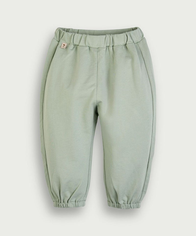 ルーズフィットの長袖トップスとロングパンツのセット。トップスはネックのフリルとポケットにロブバローポイントを与え、ポケットにはナチュラル感あるデザインの刺繍をプラス。袖口を裾にはゴムにより絞りが加えています。ロングパンツはウエストゴムとワイドなルーズフィットの仕様でお子様の脱着も楽、元気に動き回れます。※サイズによって開閉のためのボタンが付いています。