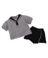 【日本限定】太ピッチが可愛いギンガムチェック柄トップスと裾にホワイトラインをプラスしたラップスカート風キュロットパンツのセット。