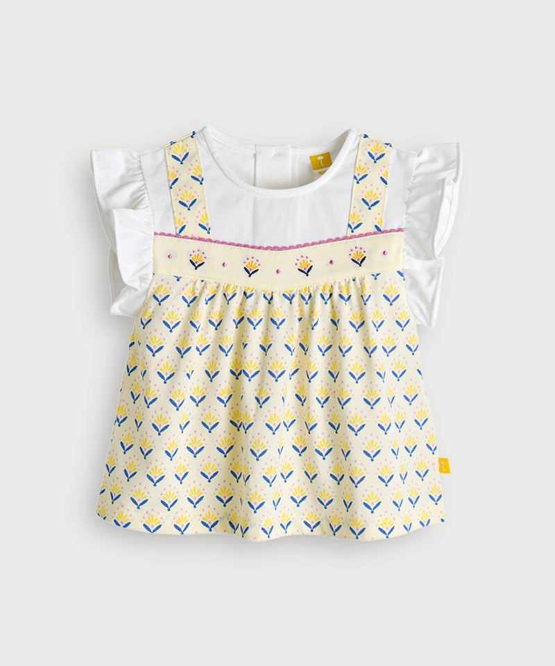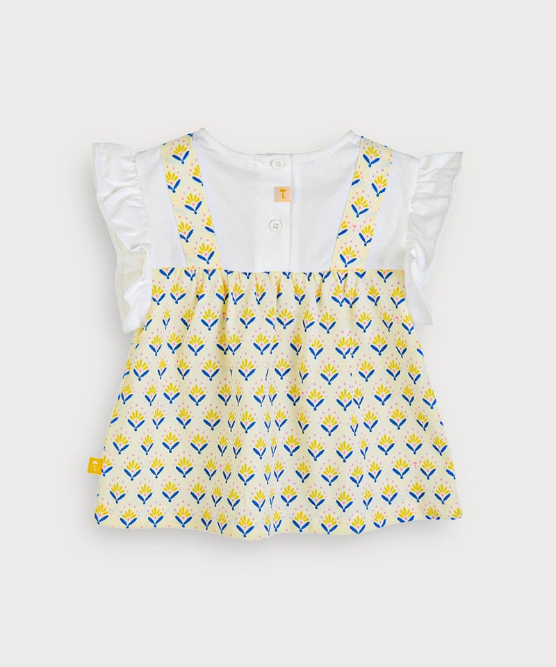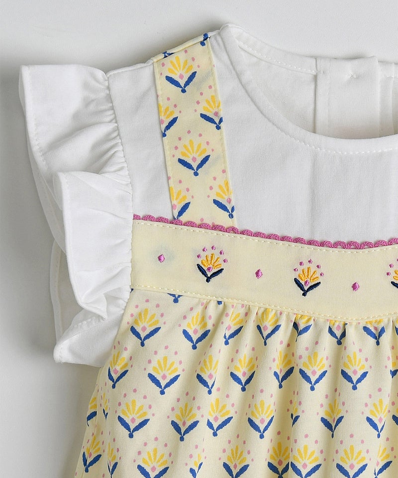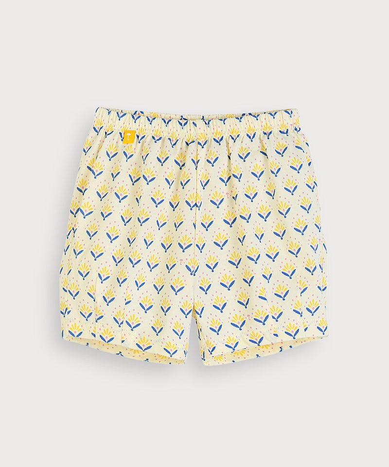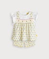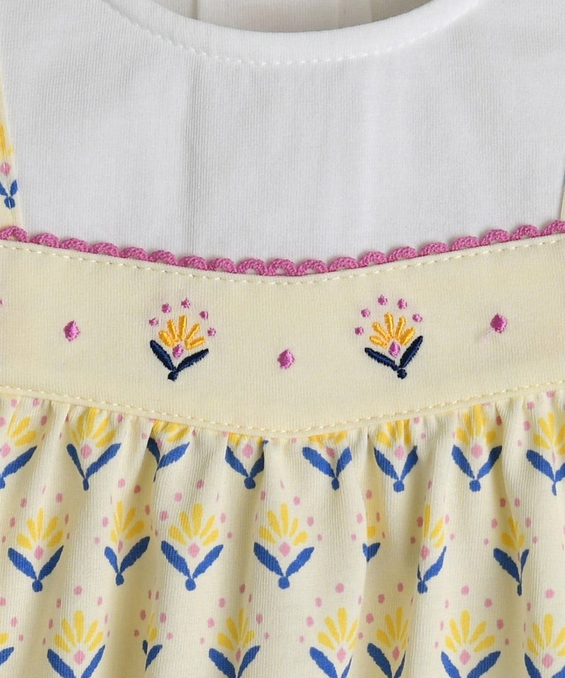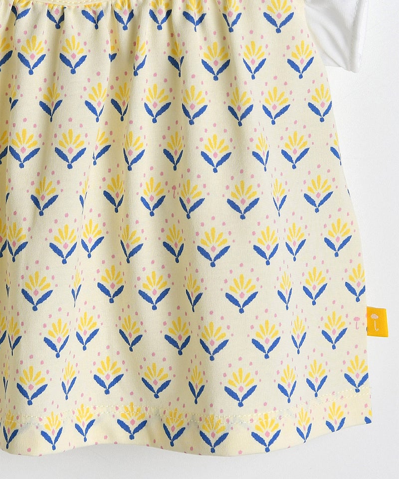 【セットアップ】イエローフラワーレイヤード風半袖トップス&ショートパンツ