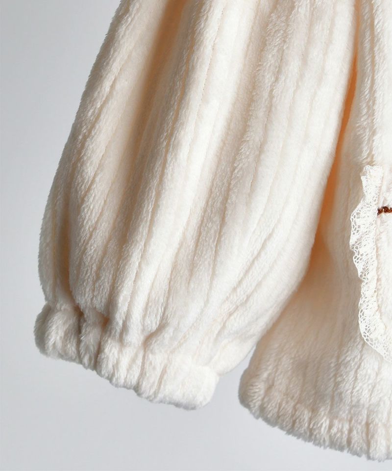 モコモコで暖かそうだし可愛いです。後ろにファスナーがついていて割と下まで開くので着替えがしやすそう。