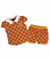 薄い手の超ミニフレンチテリージャカード半袖セットアップ。かわいいスカラップ襟とブルマフィットのパンツがポイントのアイテム。ウィーリー半袖セットアップ(W242STG24P)と兄妹ルックがおすすめです。