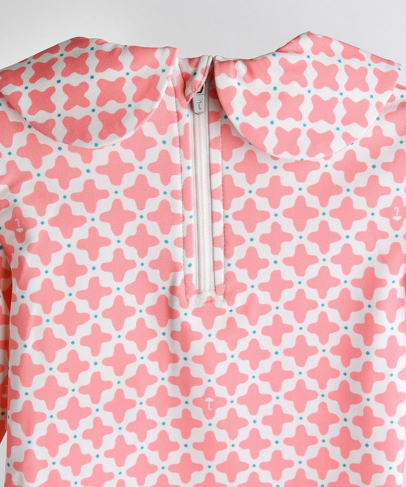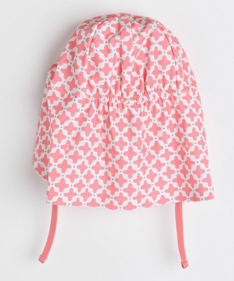 ユニークな図形グラフィックでレトロなムードのラッシュガード。強い紫外線から肌を守り、日差しを遮る帽子付きなので肌焼けしないので実用的なアイテムです。