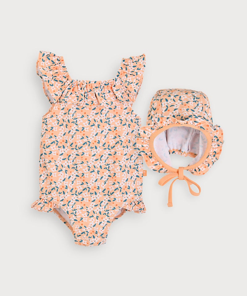 【2点セット】ジャスミンフラワースイムワンピース水着&帽子