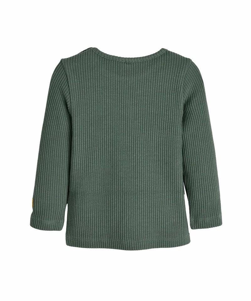 伸縮性に優れたリブTシャツ。中央の差し色と袖のラベルがポイントのアイテム。クリップスリムリブレギンス(M244KPF04P)とのコーディネートがおすすめです。