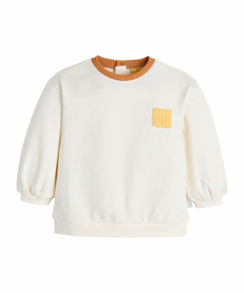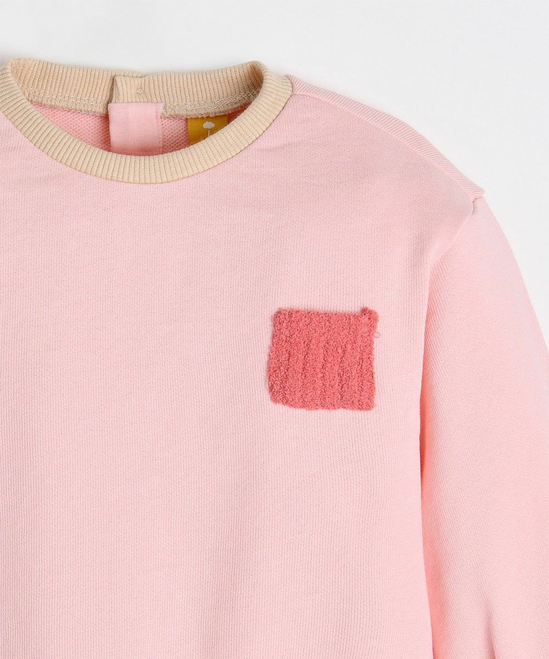 ネックの配色がかわいいトップス。胸元のミニポケットのカラー配色がアクセント。季節の変わり目から初冬まで、幅広いシーンに活躍するアイテムです。