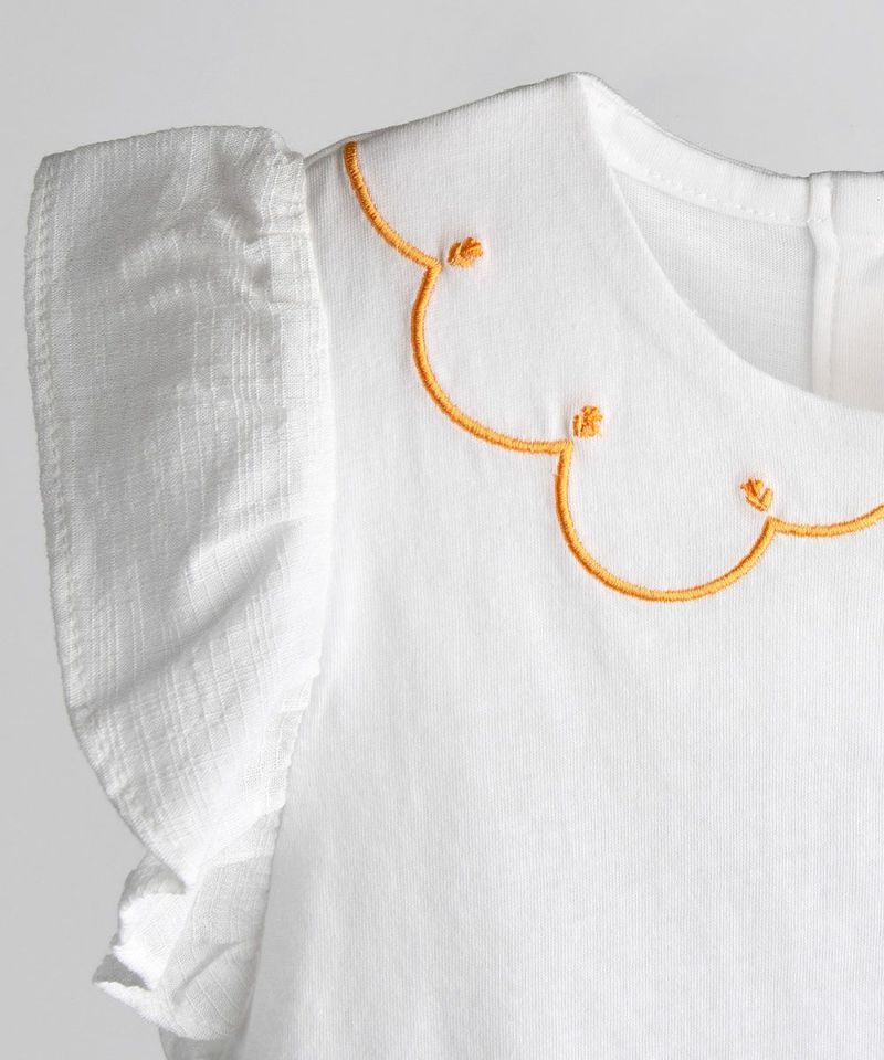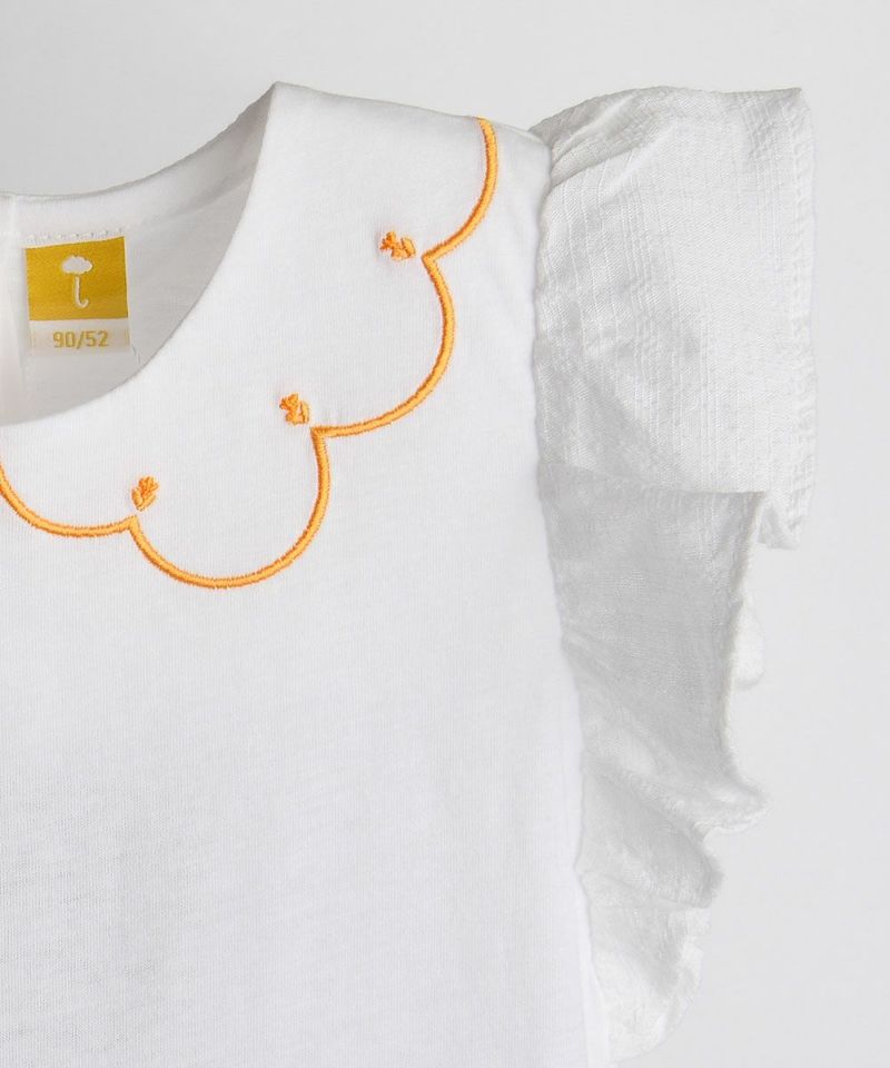 リラックスできる柔らかい素材で作られたノースリーブシャツ。暑い夏の対策として本物の襟の代わりにスカラップカラーの刺繍を加えた高級感があるデザイン。脇を覆う袖のディテールなので肌が露出しないアイテム。エンザイム加工により着心地がさらに柔らかく洗濯後も変形が少ないのもポイントです。
