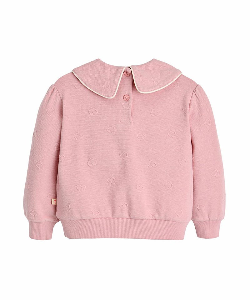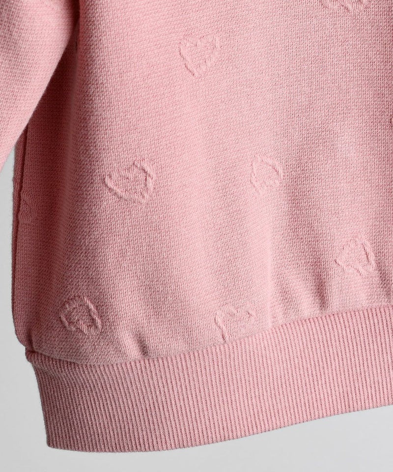 ラブリーな雰囲気のハートジャカード襟つきTシャツ。襟の配色ロゴ刺繍とパイピングがポイントのアイテム。リエナベルボトムパンツ(W243PTG26P)とのコーデがおすすめです。