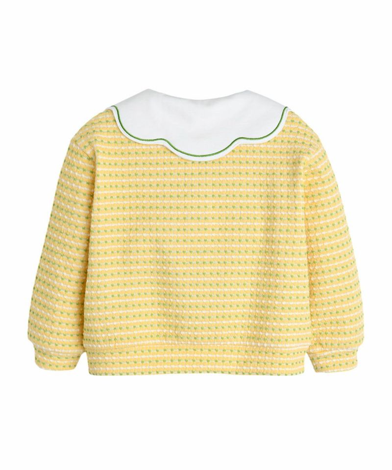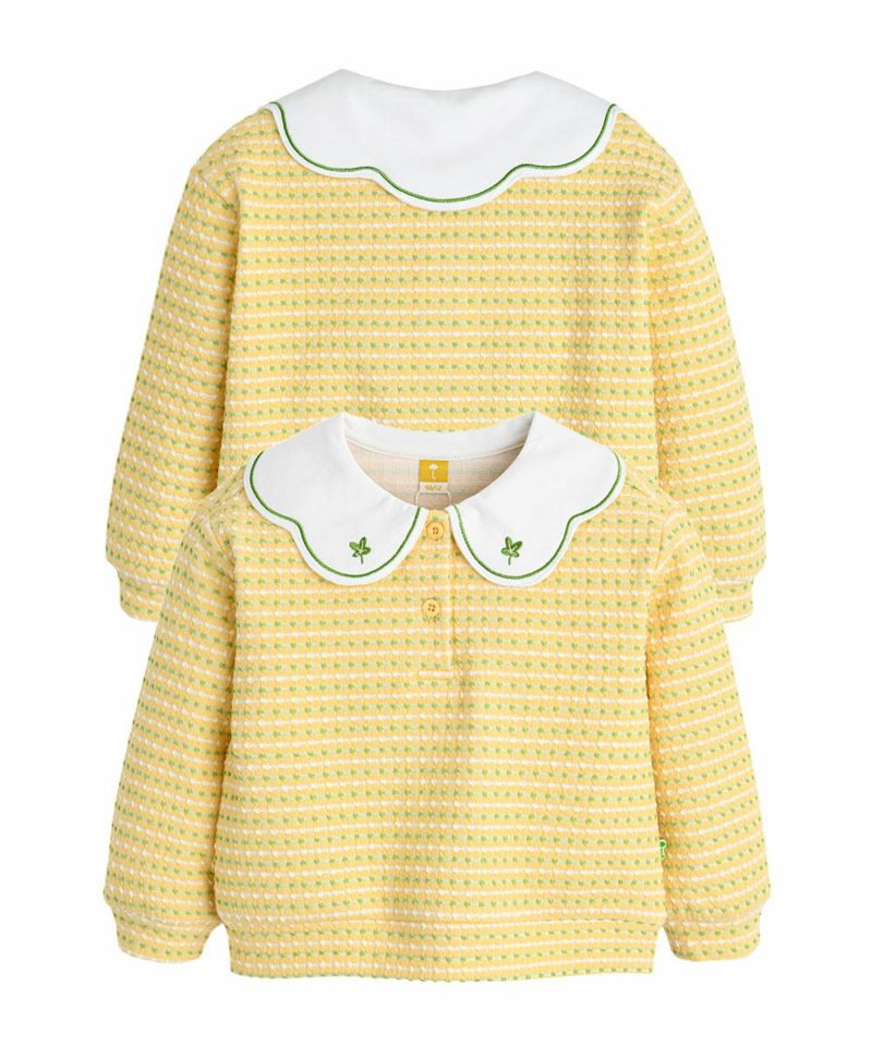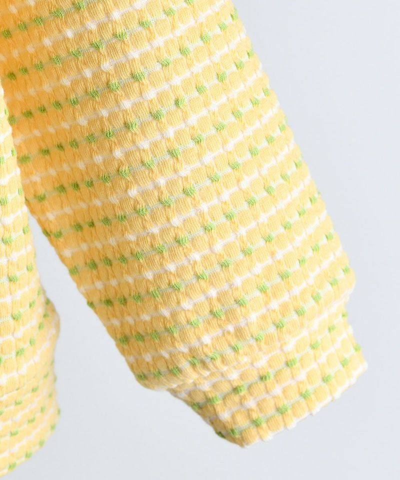 しっかりとした発色のイエローグリーン配色が可愛いジャカードトップス。