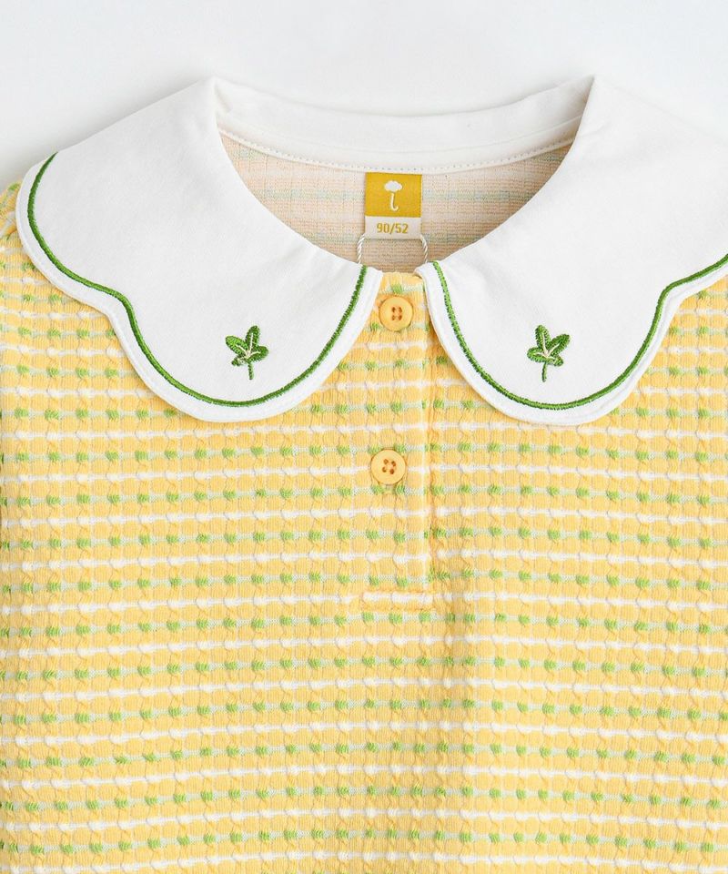 大きな襟にさわやかなクローバーの刺繍が目立ち、デイリールックのポイントアイテムとしておすすめです。