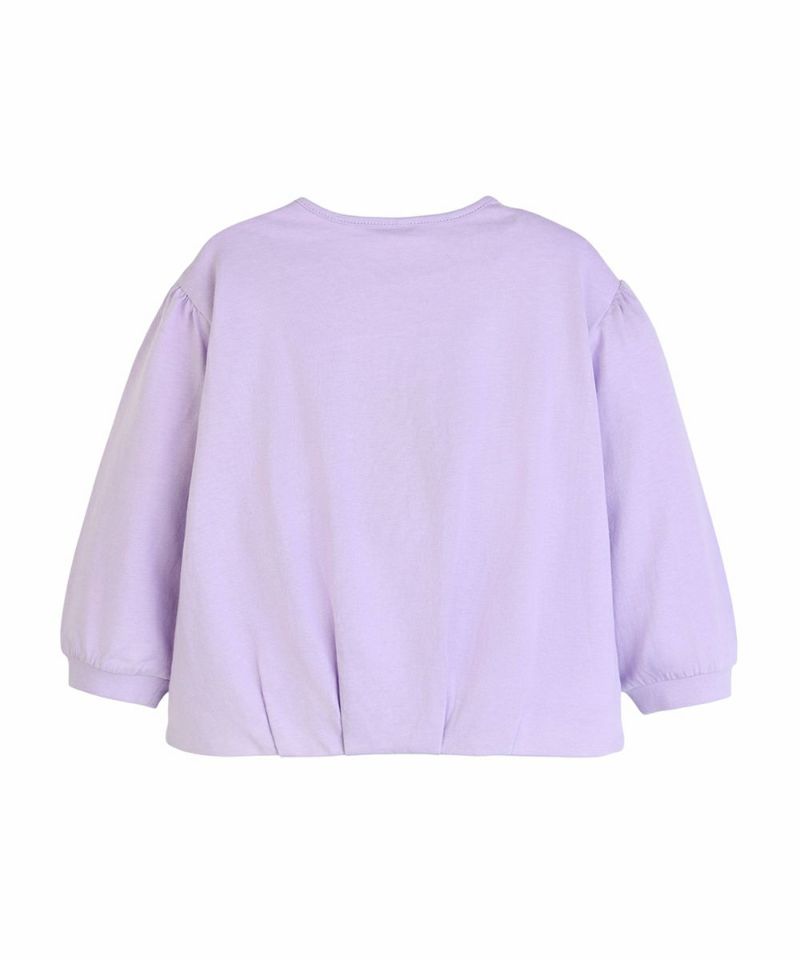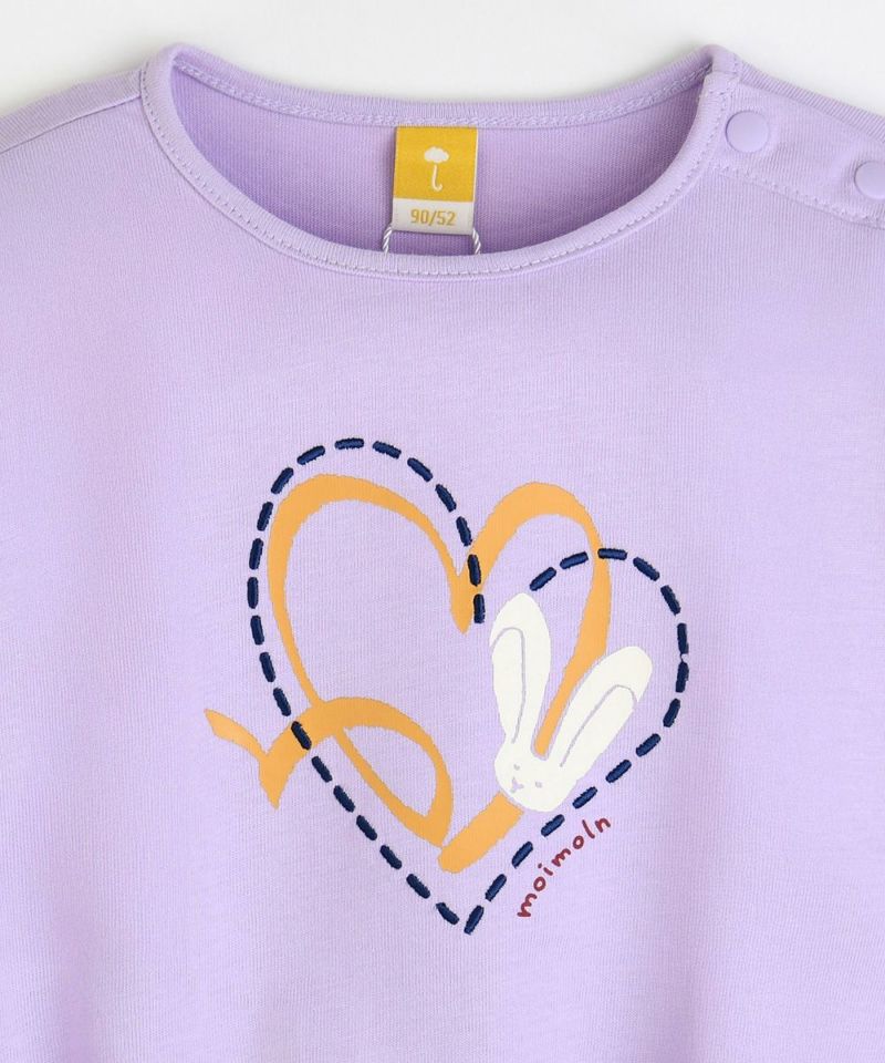 ラブリーなハート刺繍とウサギのフォレやハートのプリントを組み合わせ、ゆったりしたシルエットに仕上げた長袖トップス。裾に丸くタックをとることで、ユニークなラインを出しているアイテム。袖口はリブ付き、肩部分はスナップボタンで脱着が簡単。デニムパンツ(M253PTB08P)とのコーディネートがおすすめです。