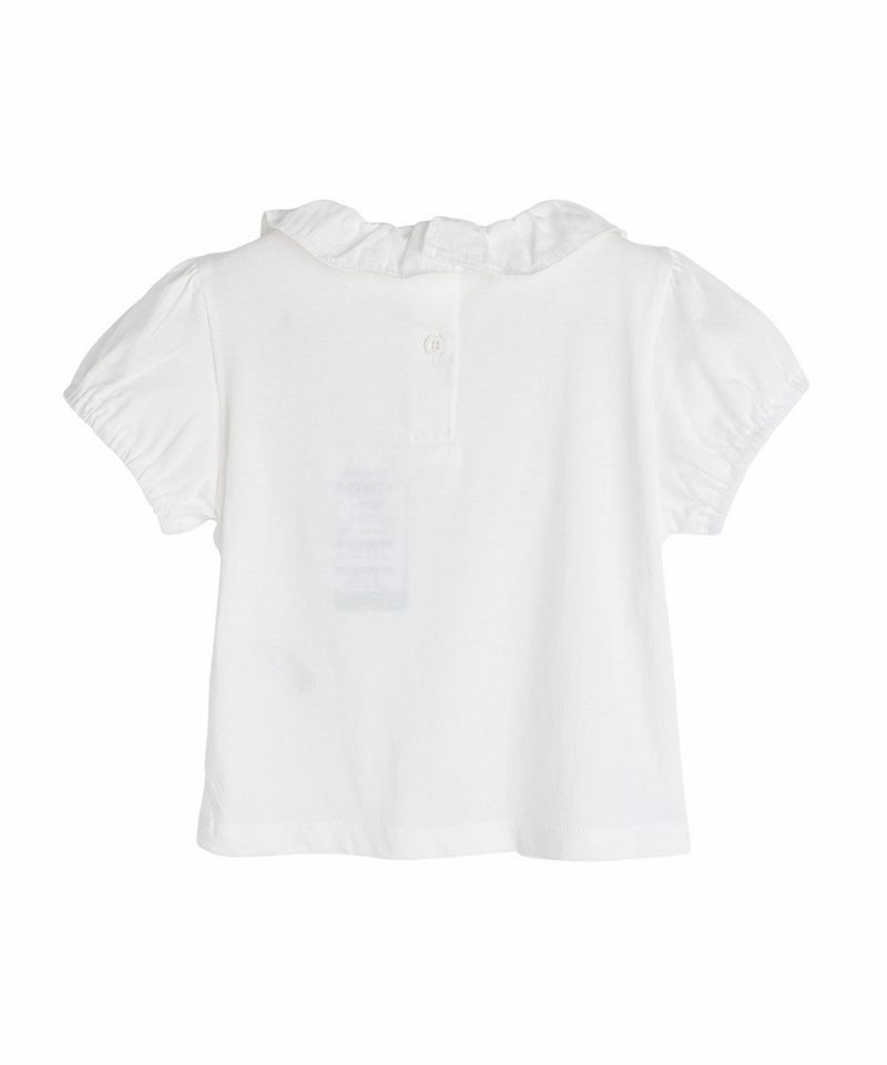 フリル襟が可愛いベーシックフィットの半袖 Tシャツ。一枚だけも着ることができ、夏に紐キャミソールワンピースとコーディネートしてもかわいいアイテムです。