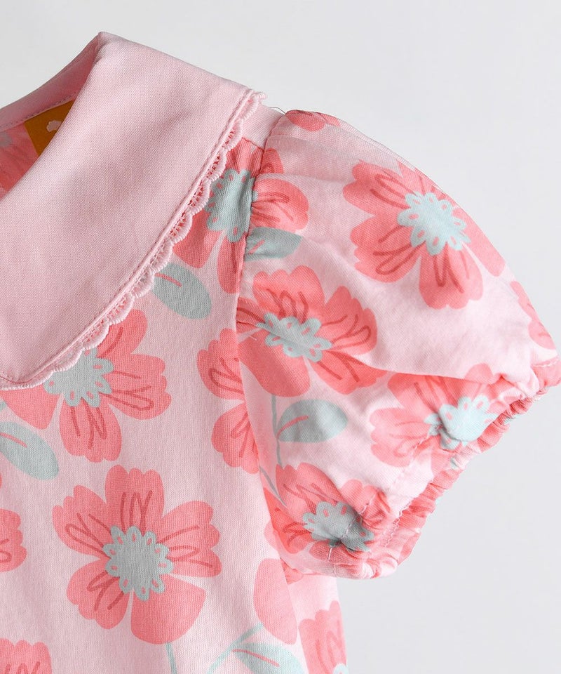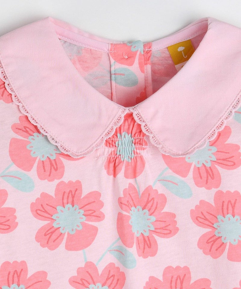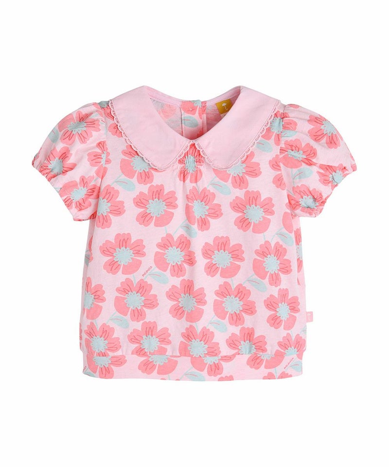 インパクトのあるピンクビッグフラワーの総柄で、着るだけで夏っぽさ全開のコーディネートが完成する半袖のカラTシャツ。ラブリーなディテールの襟と胸の部分のシャーリングがポイントで、楽に着られるアイテム。エンザイム加工により着心地がさらに柔らかく洗濯後も変形が少なく、同じ柄のセットアップ(M252STB23P)と姉妹ルックがおすすめです。