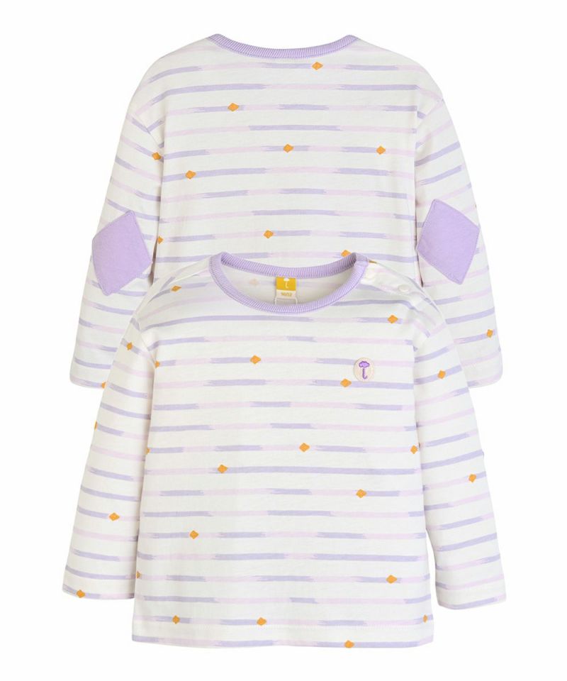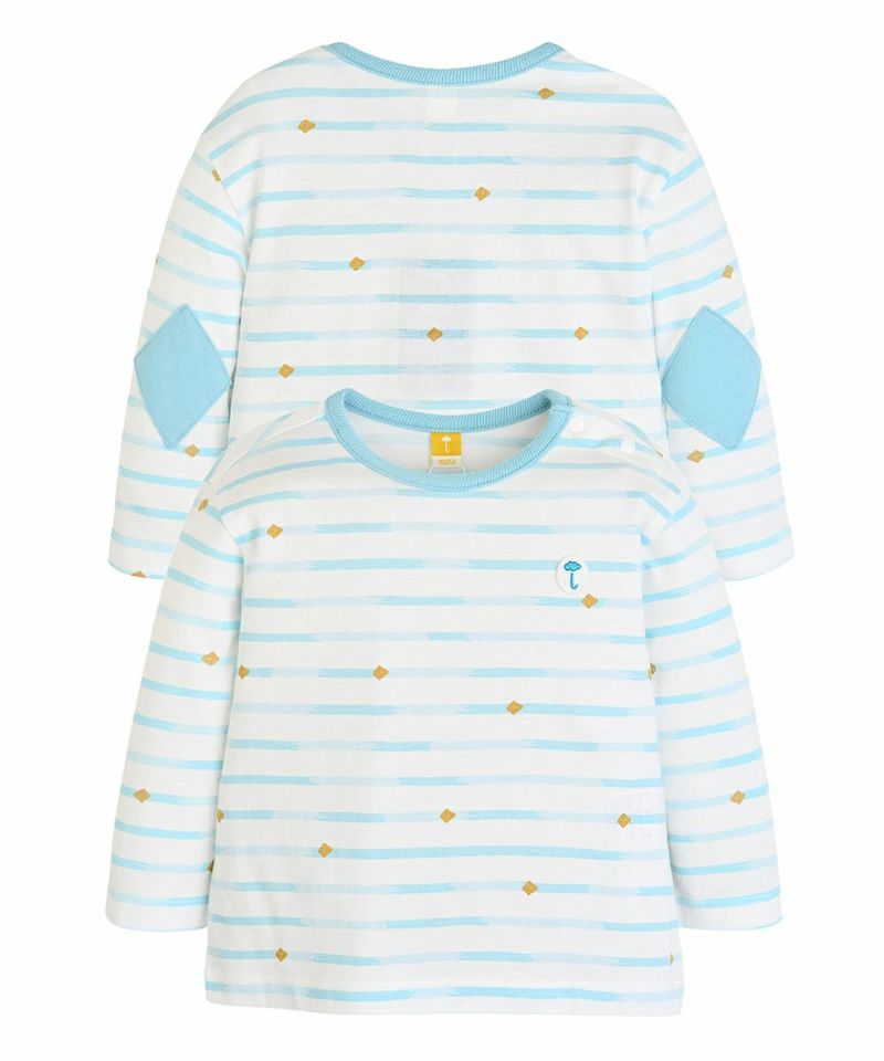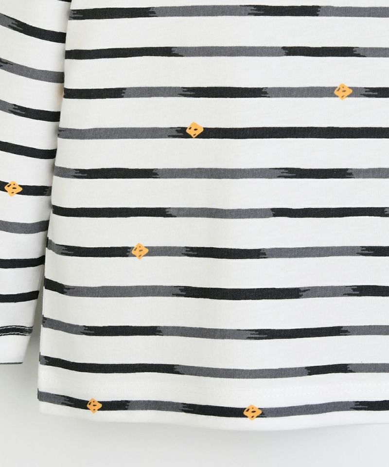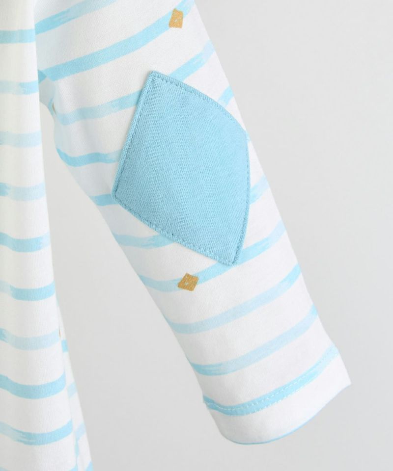 【SOFT&】パッチ付きボーダー柄長袖Tシャツ