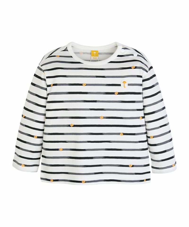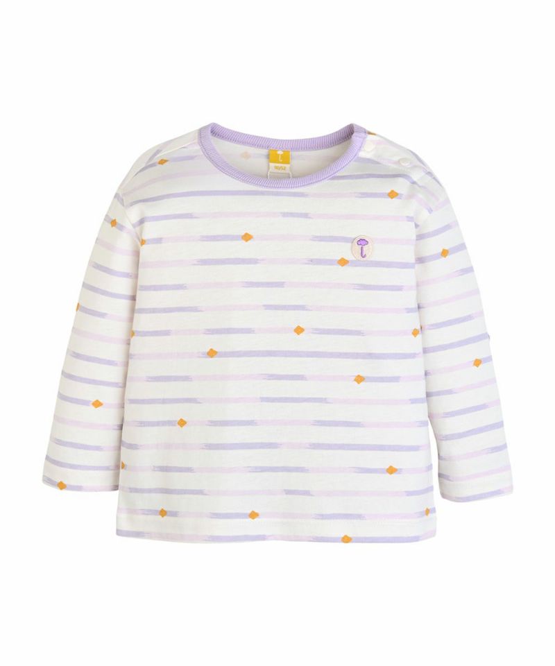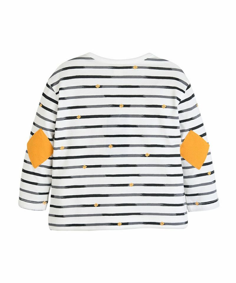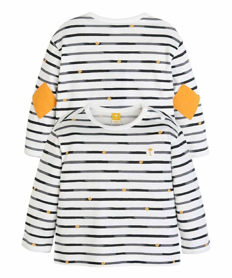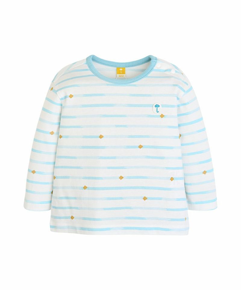 【SOFT&】パッチ付きボーダー柄長袖Tシャツ