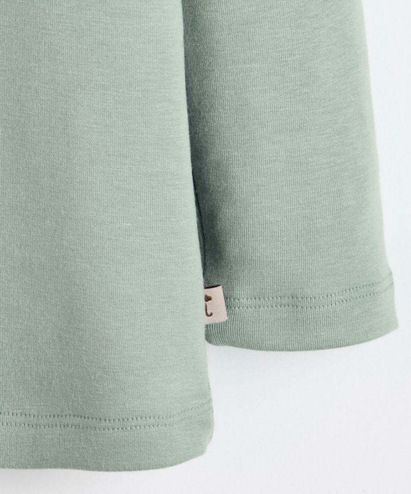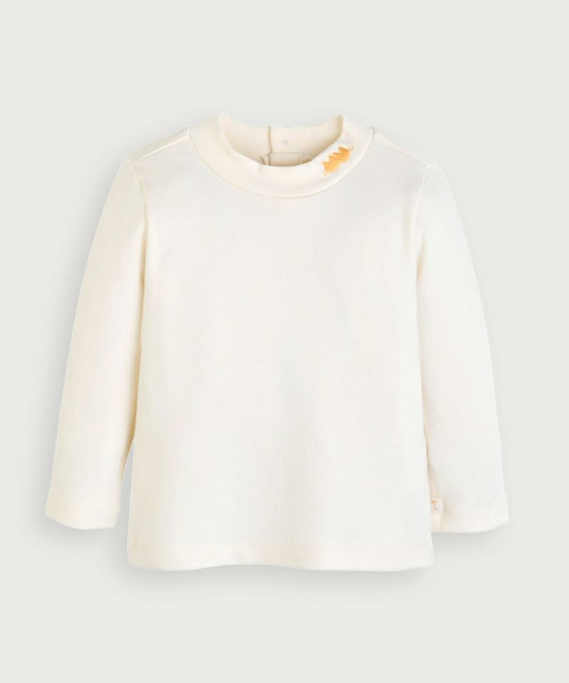 薄くて柔らかくしかも暖かい生地感で定番人気のシンプルなプチハイネック長袖Tシャツ。ネック部分の猫刺繍がポイントで、寒い冬のインナーとして着用しやすいアイテムです。