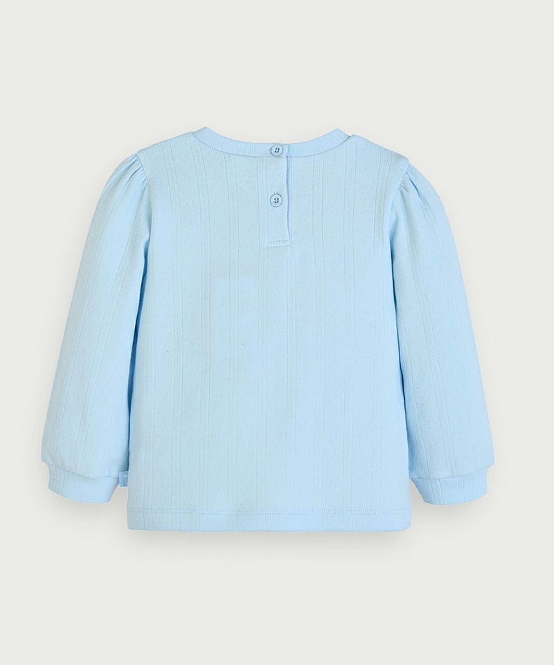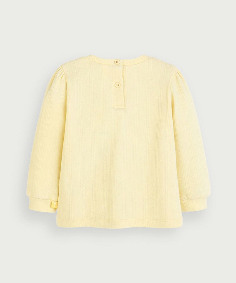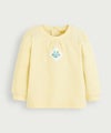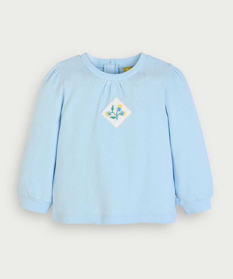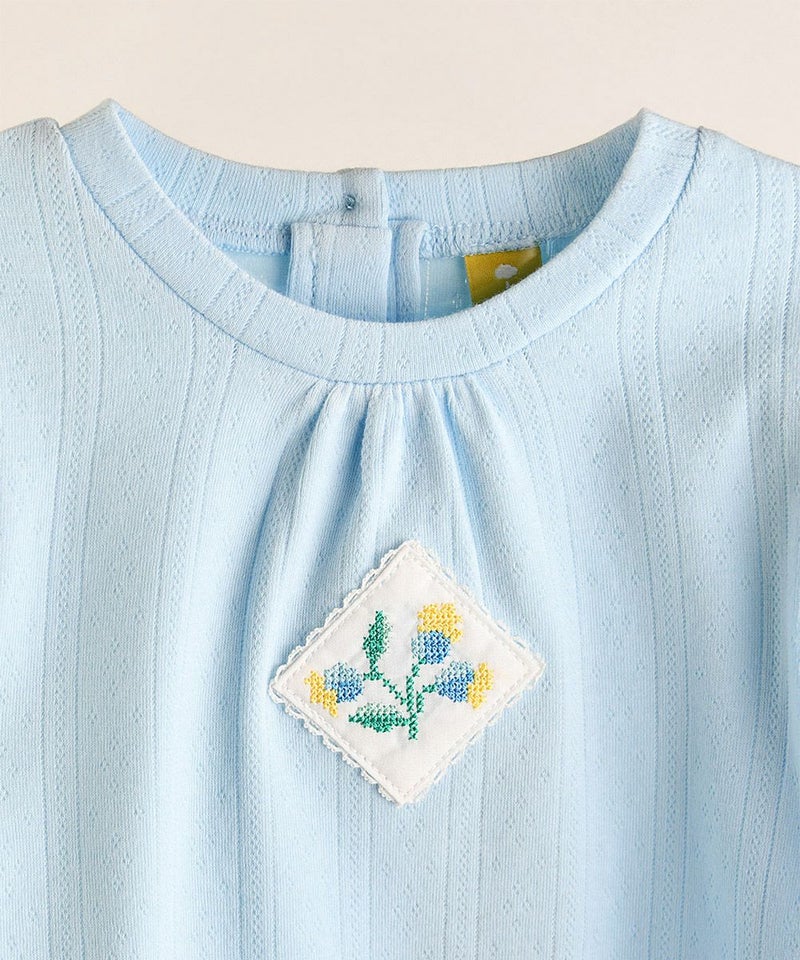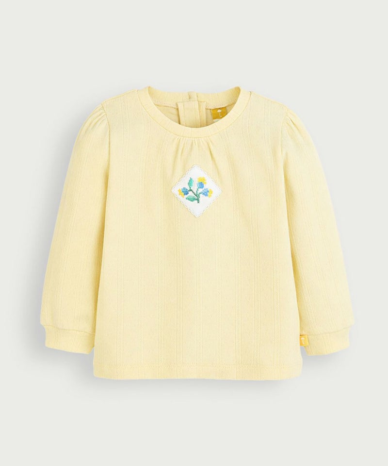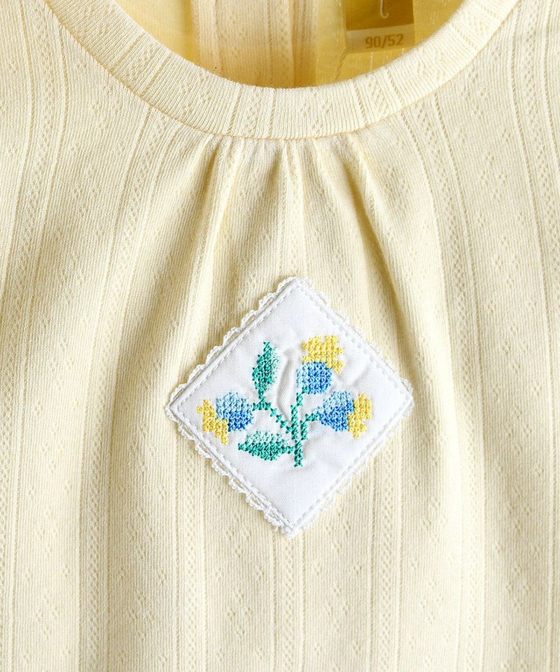 フロントの花の刺繍がポイントの長袖Tシャツ。
