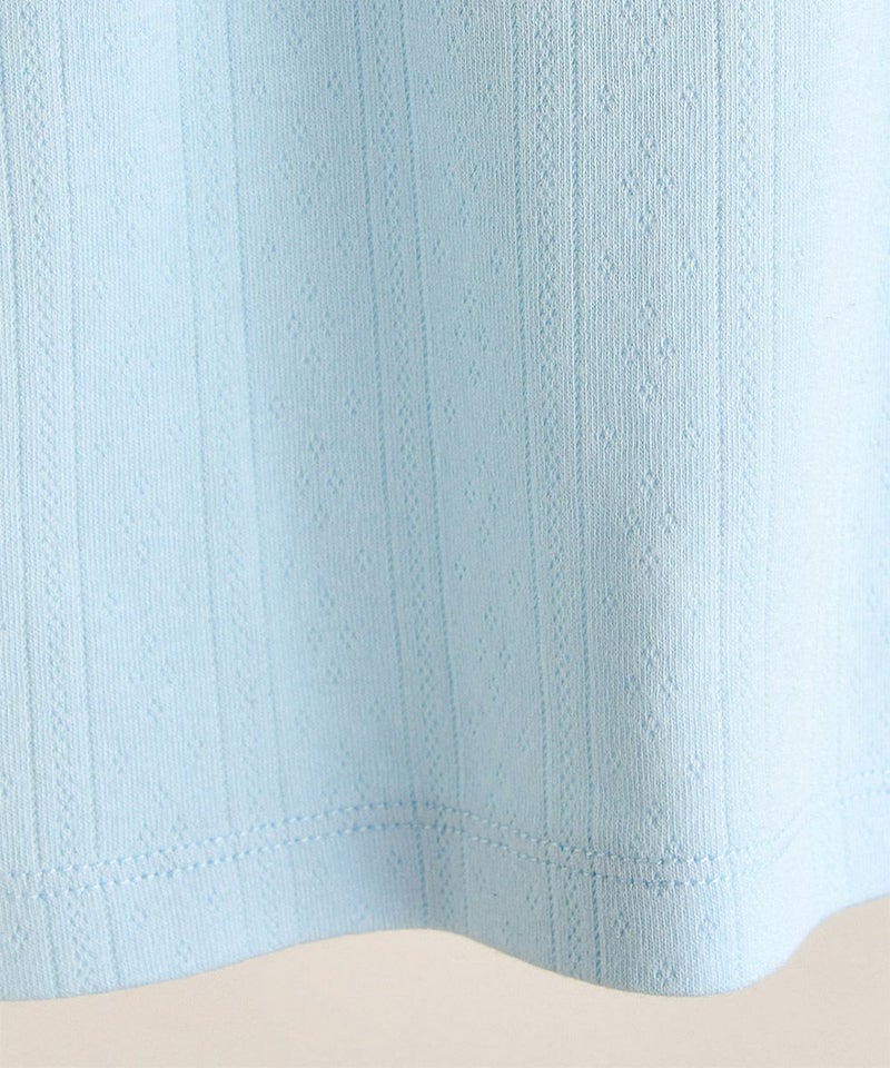 アイレット素材で軽くて伸縮性があるので動きやすく、レギュラーフィットのシルエットでデイリーに活躍します。