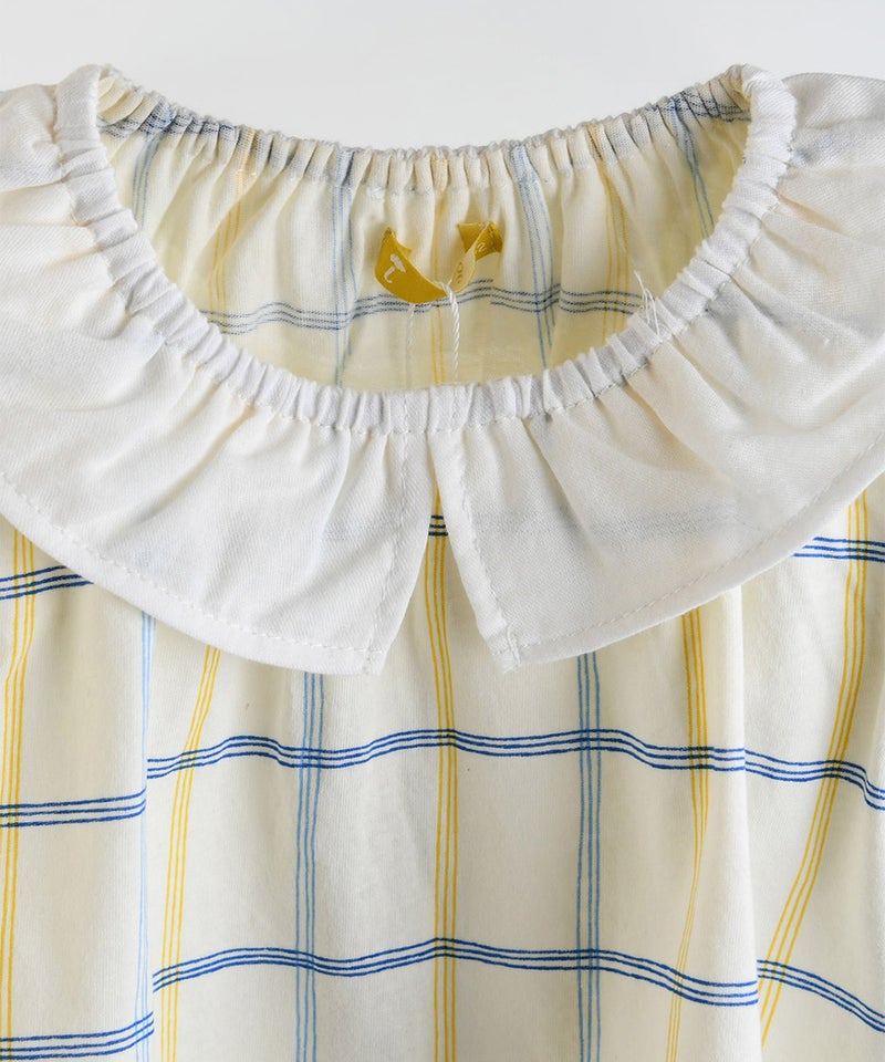 イエローは軽やかなジャカード素材でやさしく可愛らしい印象に、アイボリーはユニークなチェック柄でコーデのアクセントに仕上げています。