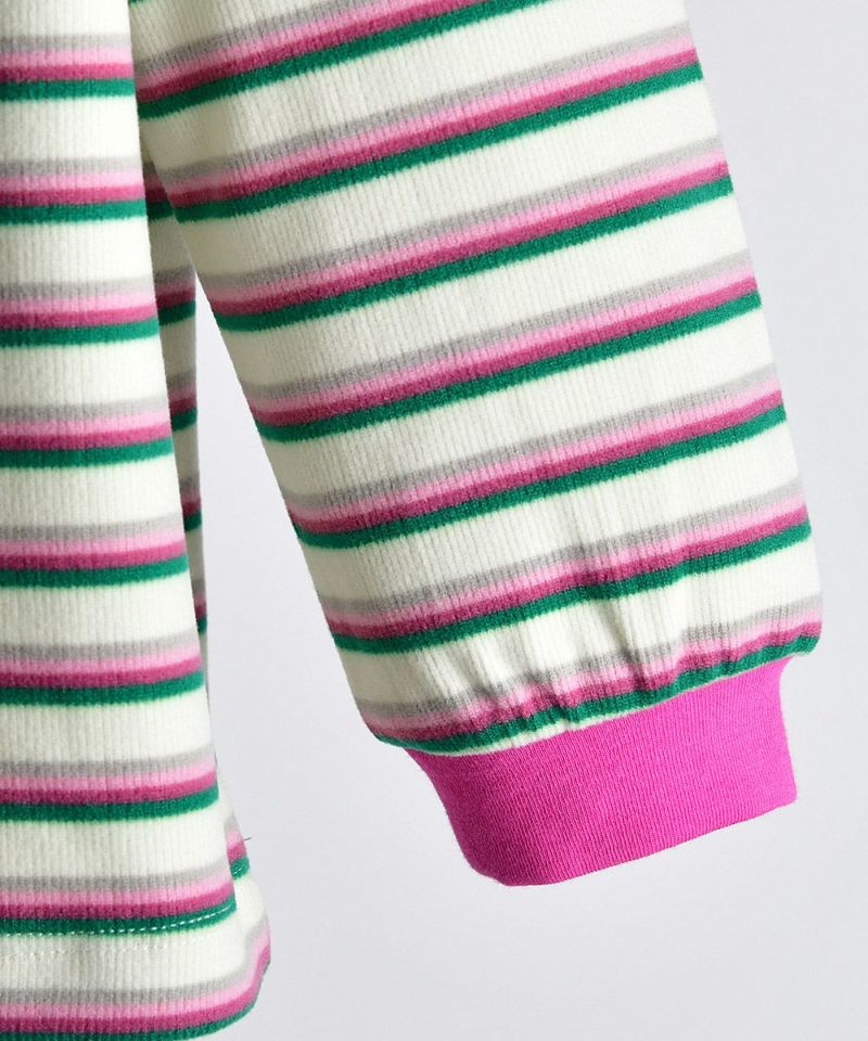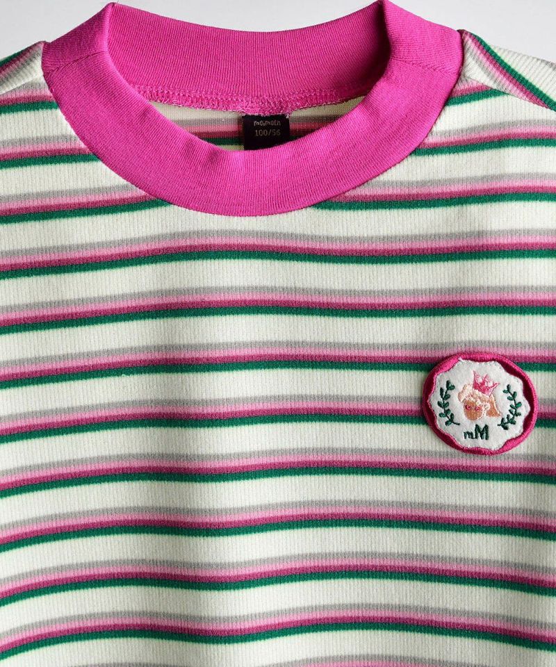 ポリフライススパン素材のマルチストライプがレトロムードを演出してくれる、ベーシックフィットハーフネックトップス。軽いけど柔らかく、保温性が高い素材にふんわりとした配色でポイントを与えたアイテムです。
