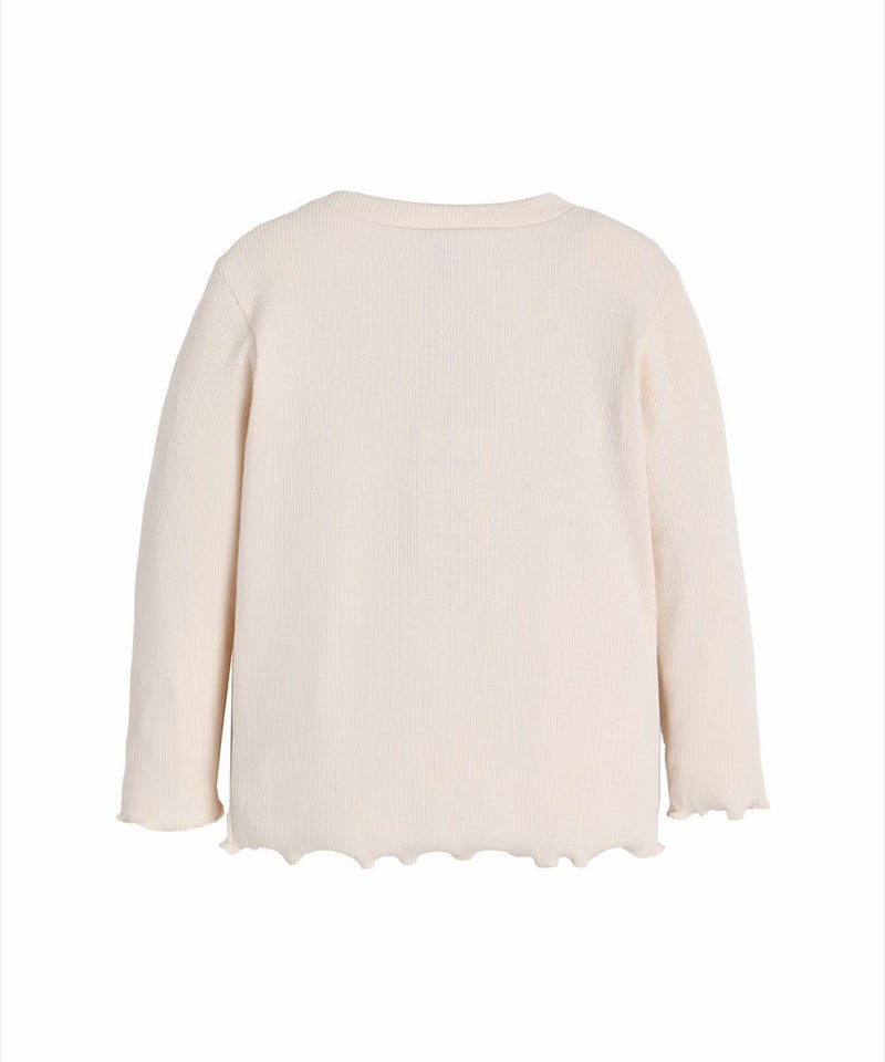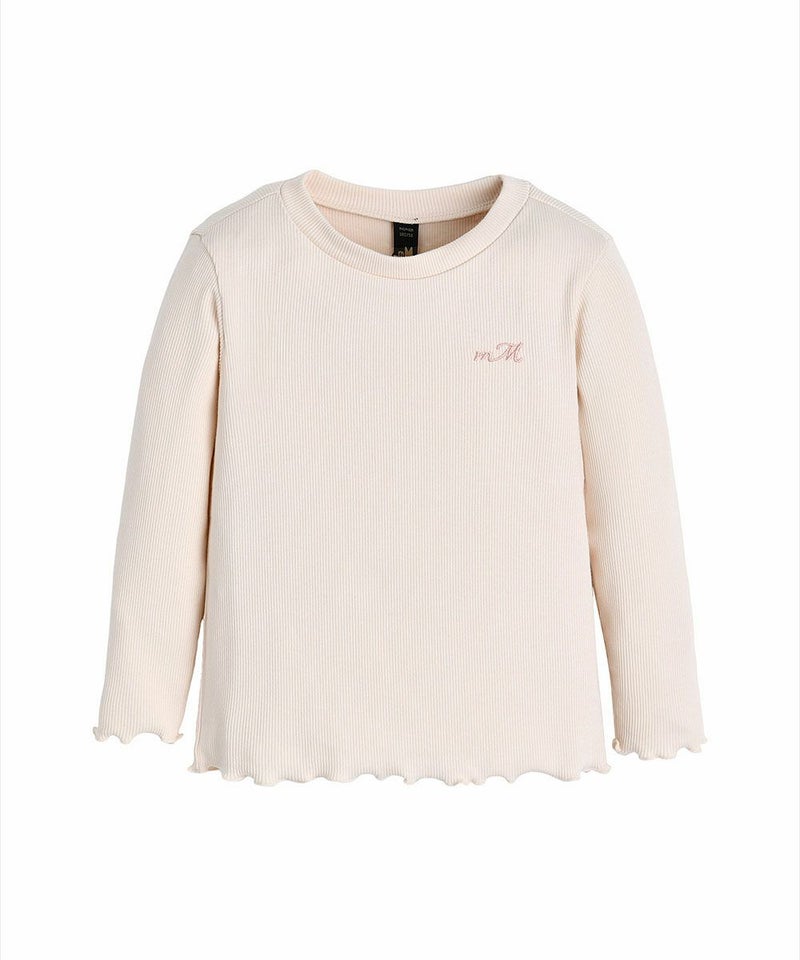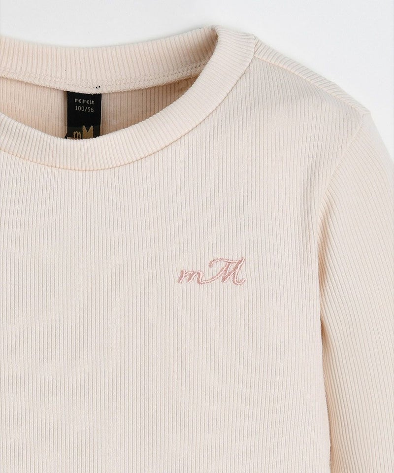 ピュアピンクのリブTシャツ。レイヤードコーデのインナーにもピッタリ♪胸元のロゴ刺繍がポイントのアイテムです。