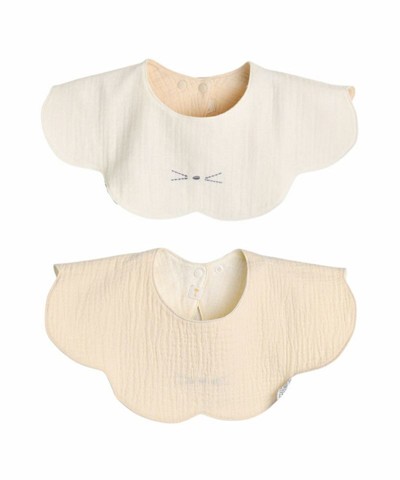 リバーシブルスタイ。襟のようなデザインでコーデのポイントとしておしゃれな印象に♪伸縮性に優れ、ねこのひげのようなデザインが可愛いアイテム。ベビーギフトにもおすすめです。
