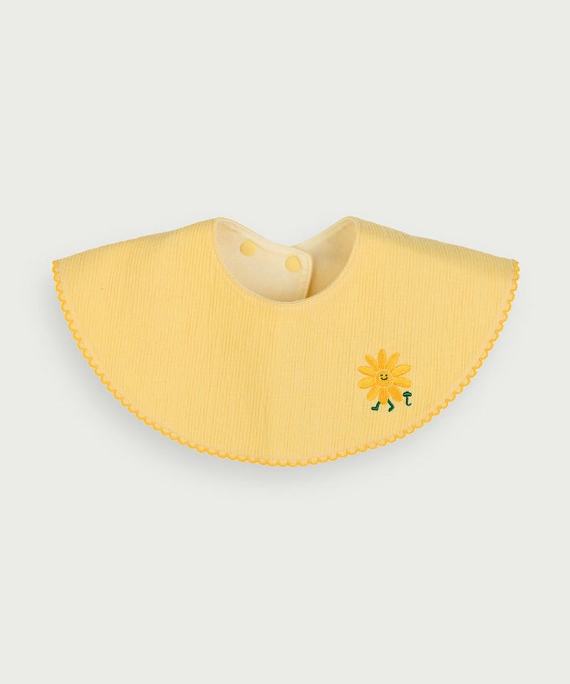 伸縮性に優れたカバーリングジャカードと丸型タイプがうれしいリバーシブルタイプのスタイ。