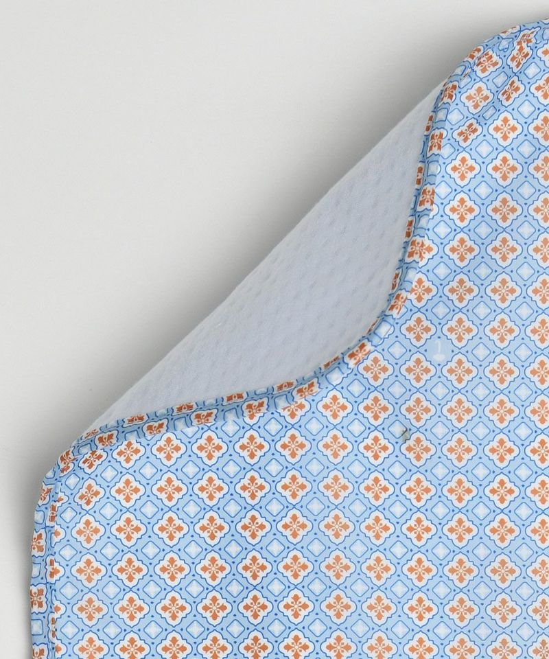 ソフトなソリッドカラーにムードのある柄の面と、パイピング配色のすっきりとした印象の面が特徴の携帯用防水敷布団。柔らかい三重紙の生地の裏面には生活防水処理が施されているため汚れを防ぎ、防水敷布団を畳んでストラップで固定させるとコンパクトなサイズになり、持ち運びに便利なアイテムです。