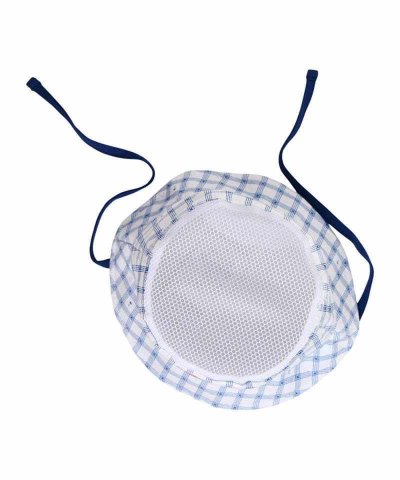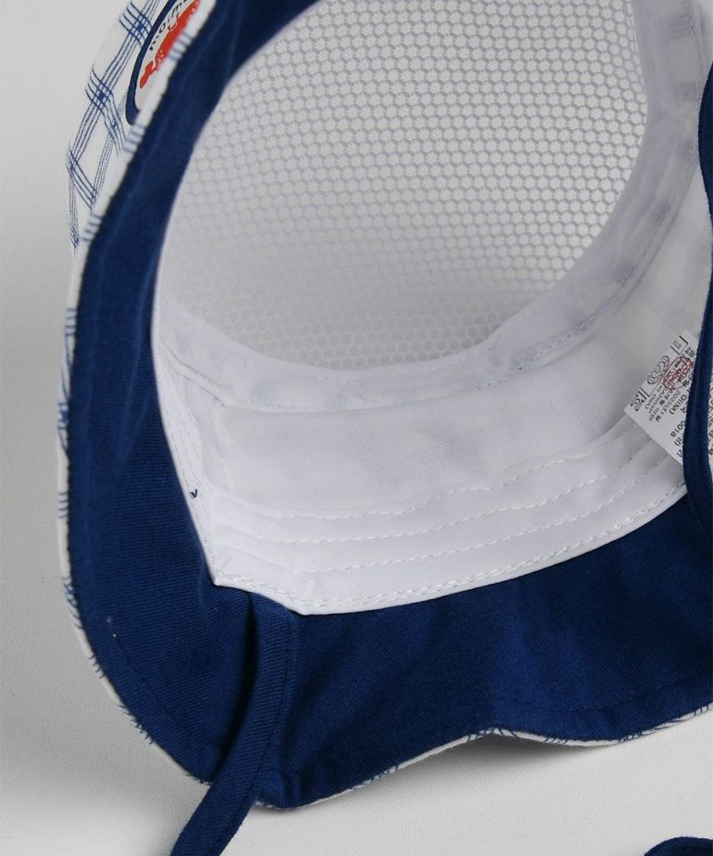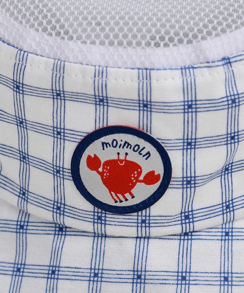 柔らかく肌が敏感な赤ちゃんに適したモダール混生地のハット。カニさんワッペンがアクセントに、頭頂部はメッシュ混の生地で通気性がよく暑い季節にも適した帽子です。紐を顎下で結び、帽子の落下防止も考えられた商品です。