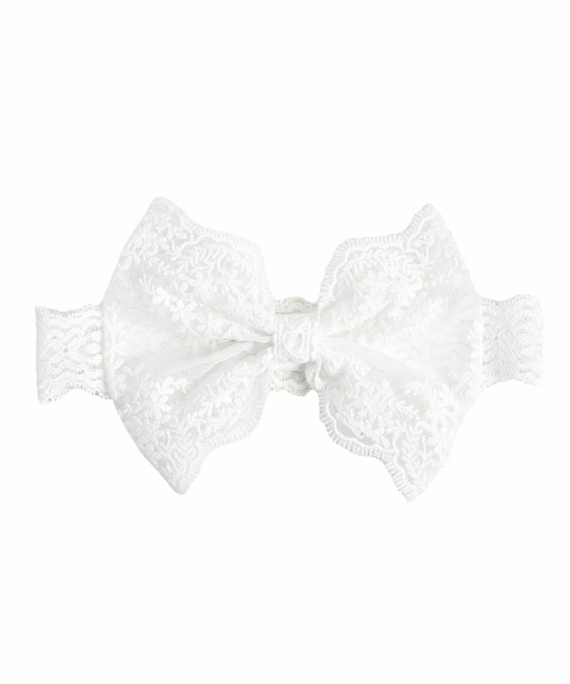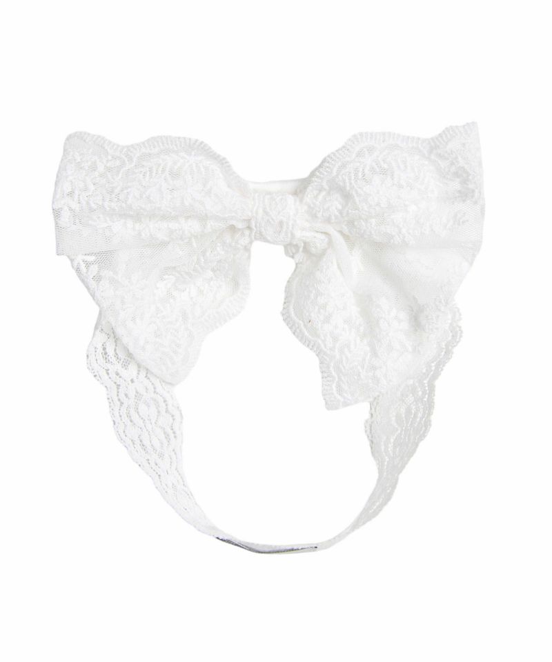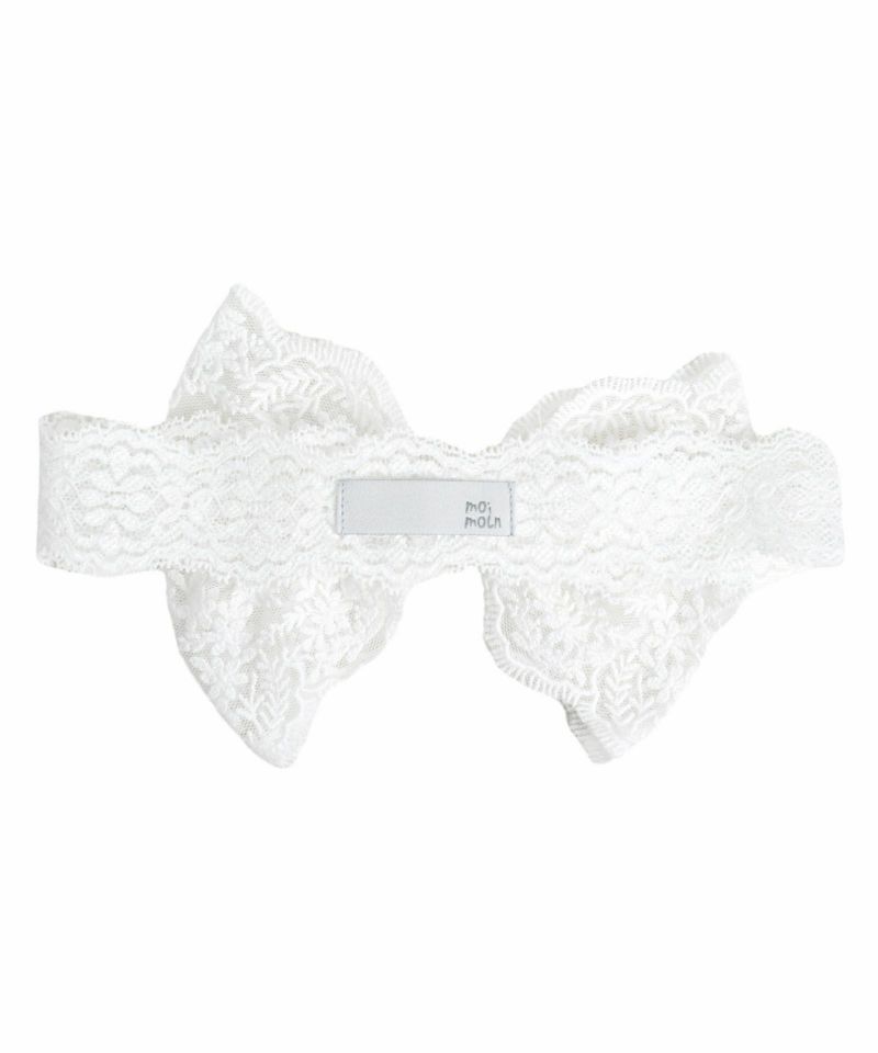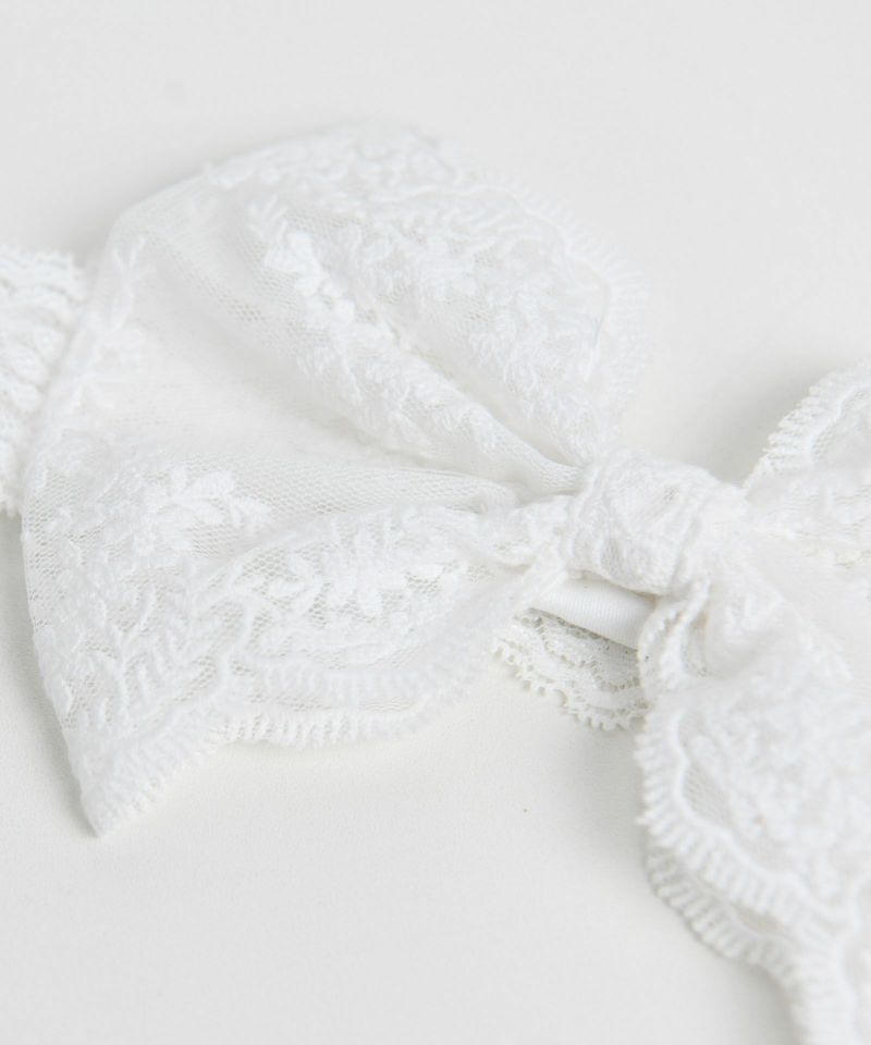 刺繍レースのリボンモチーフヘアバンド。伸縮性のあるバンドを使用しているので、頭が締め付けられずに着用できるアイテムです。