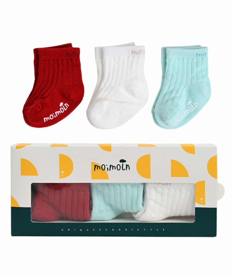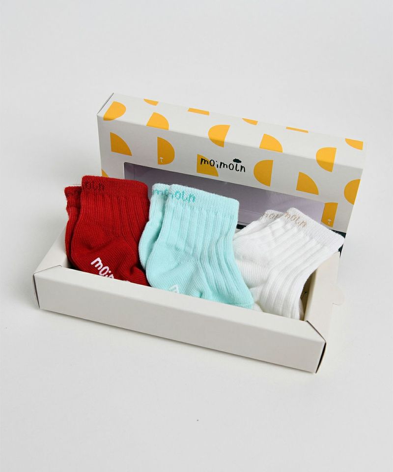 新生児用カラーソックス3点セット。シンプルなデザインな為どんなコーデにもご使用いただけます。ギフトとしても喜ばれるアイテムです。
