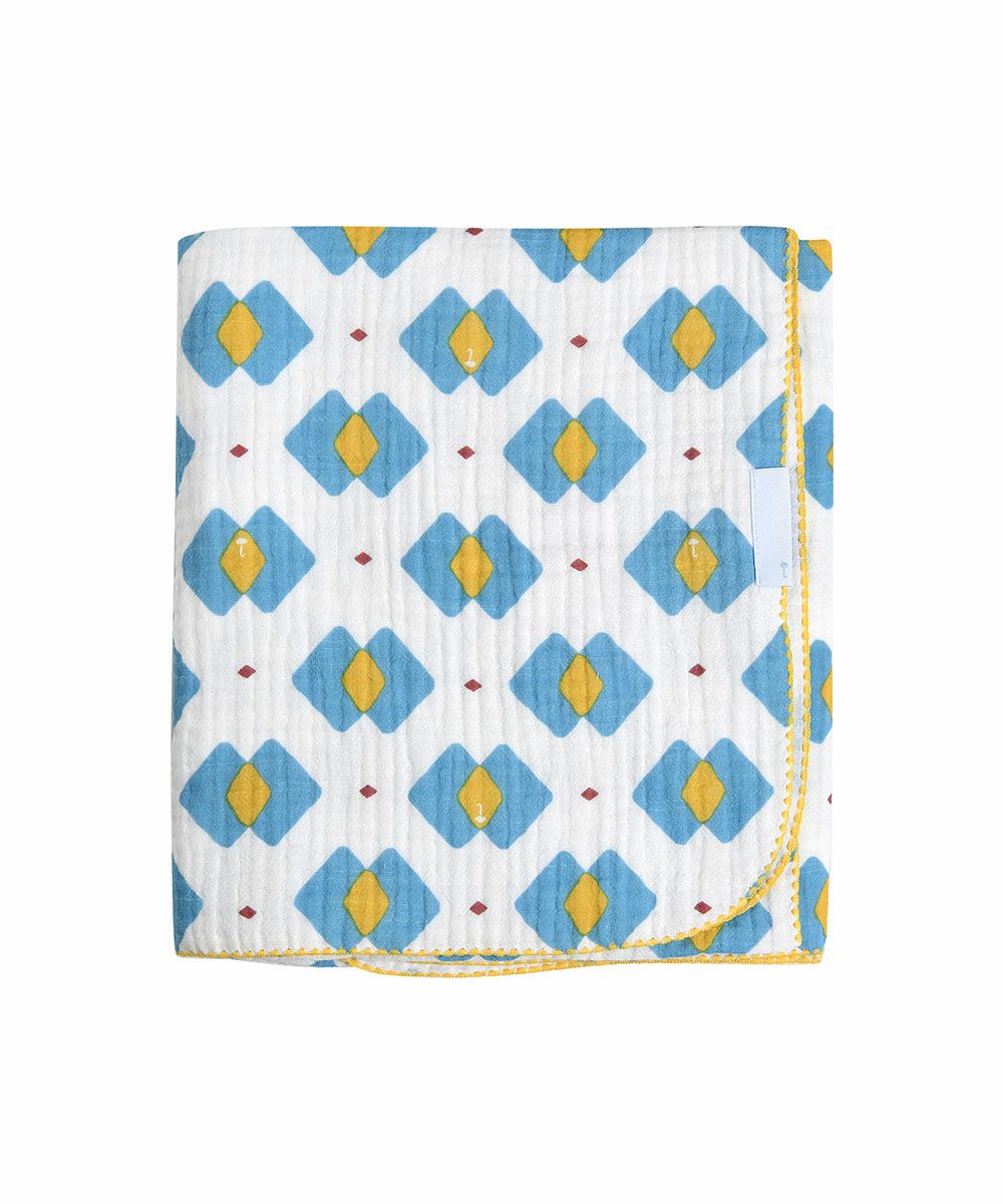 ブルーダイヤ柄ブランケット