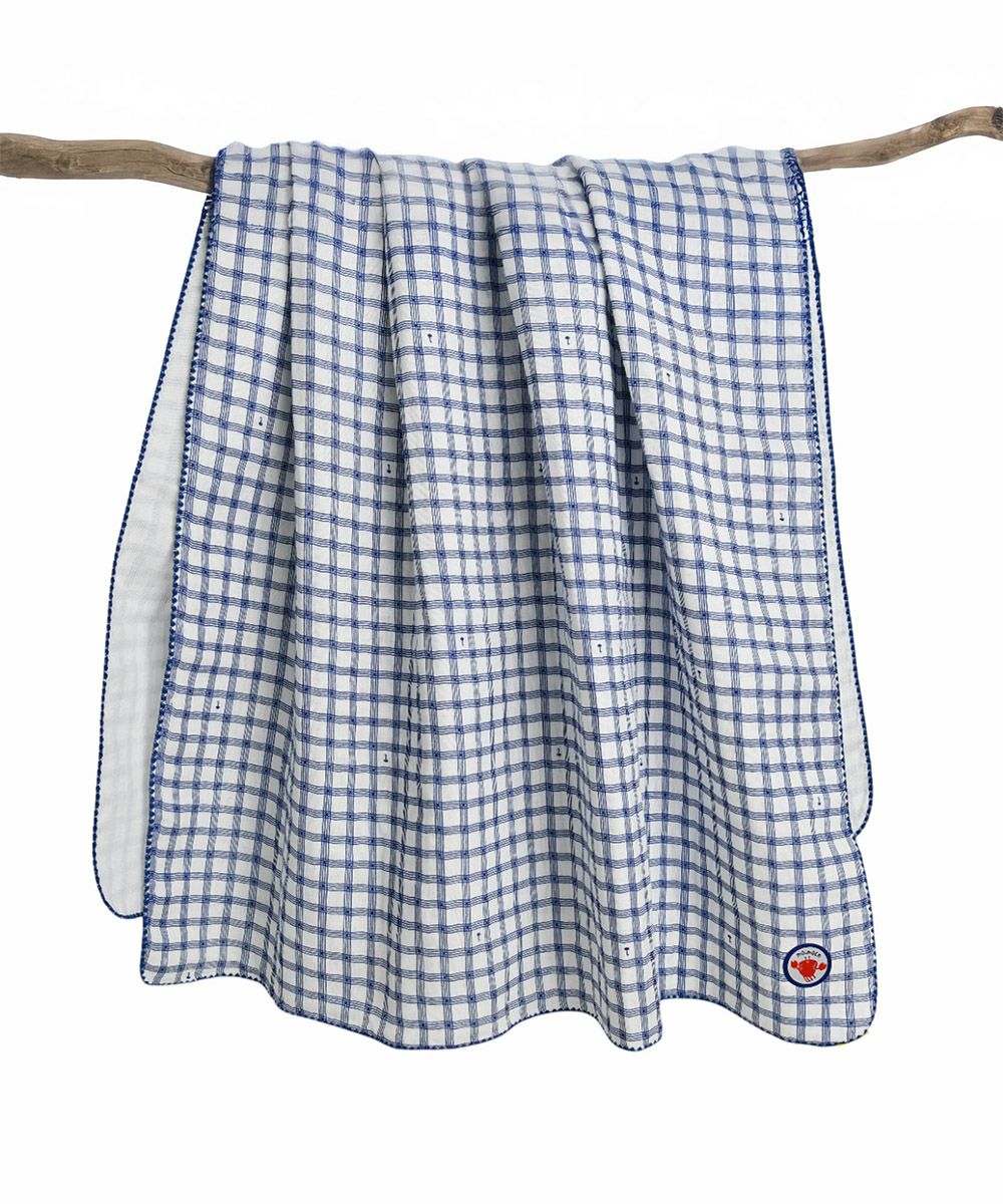 ブルーチェックガーゼおくるみ