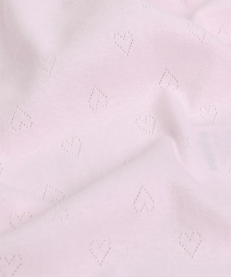 ピュアなハート柄がちりばめられたジャガード生地に淡いピンクのソリッドカラーが合わさった、ふんわりとした優しい肌触りのおくるみ。新生児の寝具用、出産準備用、保育園のお昼寝布団用など、幅広い用途でお使いいただけます。出産祝いのギフトとしても大変喜ばれる商品です。秋のシーズンアンダー、mini moiヘイティーアイレットシリーズ(ミトン M2552FW02P)とのセット使いもおすすめです。mini moiとは・・・新生児のための新しいmoimolnのオリジナルシリーズ。