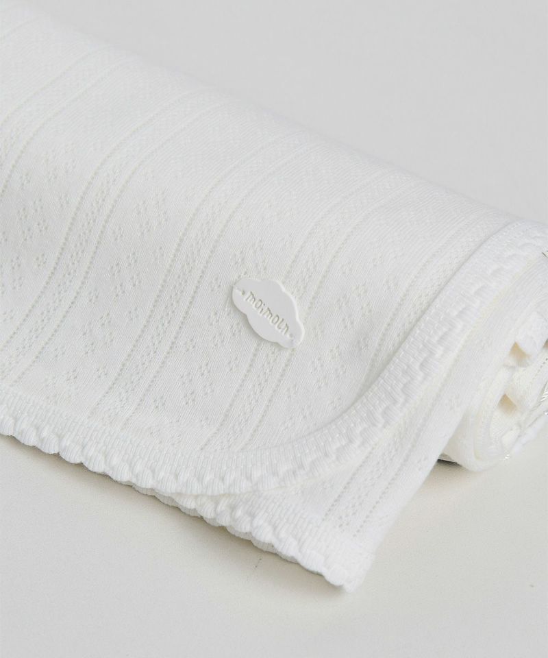 レースのような素材のおくるみ。高級感があり出産のお祝いとしても喜ばれるアイテムです。