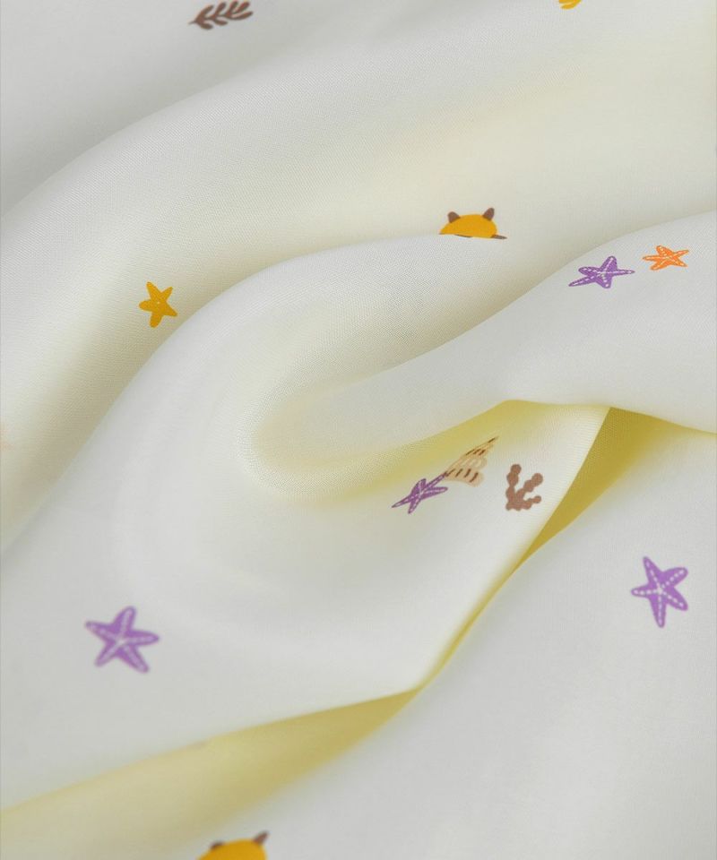 レーヨンおくるみ。軽く速乾性があり肌にくっつかない素材がポイント。海モチーフの柄が可愛いく、春夏の外出時も万能にご使用いただけるアイテム。出産のお祝いにもおすすめです。