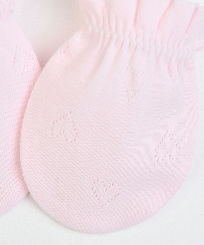 ピュアなハート柄がちりばめられたジャガード生地に淡いピンクのソリッドカラーが合わさった、ふんわりとした優しい肌触りのミトン。爪で弱い肌を傷つけるのを防ぎ、手を温かく保温してくれるミトンは新生児の寝具用、出産準備用、幅広い用途でお使いいただけます。出産祝いのギフトとしても大変喜ばれる商品です。秋のシーズンアンダー、minimoiヘイティーアイレットシリーズ(おくるみ M2552FW02P)のセット使いもおすすめです。minimoiとは・・・新生児のための新しいmoimolnのオリジナルシリーズ。