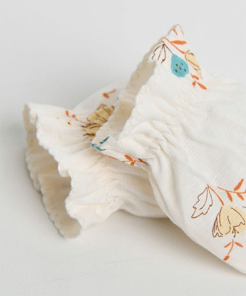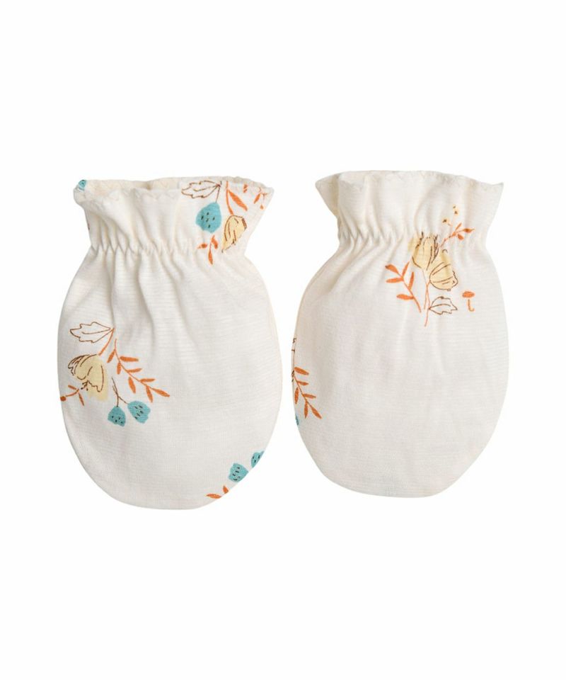 シーズングラフィック柄のミトン爪から肌を守り手を温めてくれるアイテム。M2551JW45P(クインアマンおくるみ)とセットがおすすめです。
