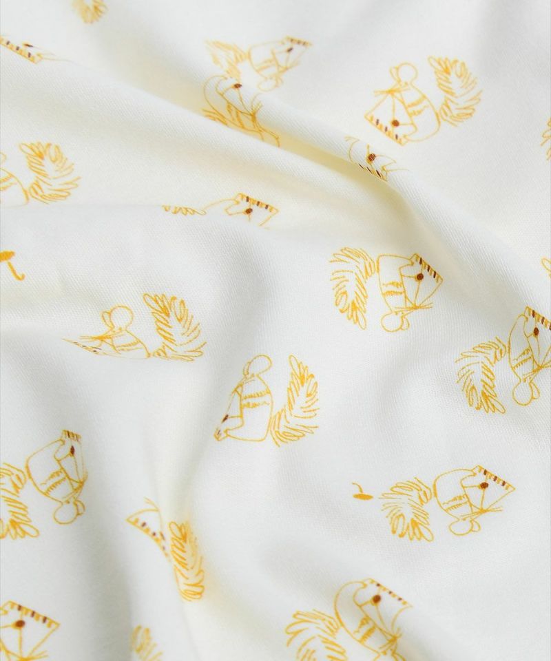 肌触り良く若干伸びる素材なので、おくるみした時に気持ちよく体にも密着するようで、こちらのおくるみのおかげで我が子はよく寝ました。デザインは素朴でかわいいです。