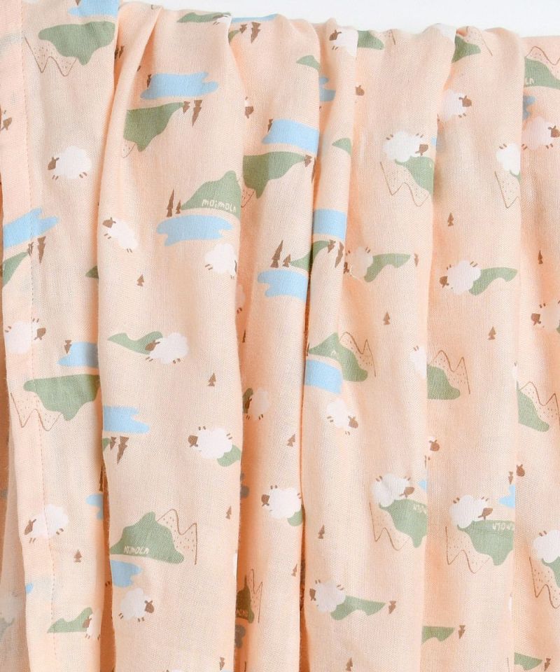 ムードのある羊モチーフの総柄ガーゼケットで春から夏まで外出時に手軽に使いやすいアイテム。バンブーガーゼを使用している為、柔らかく通気性に優れており汗をかきやすい子にぴったりな多用途ガーゼケットです。