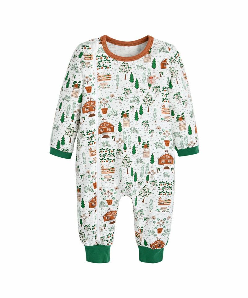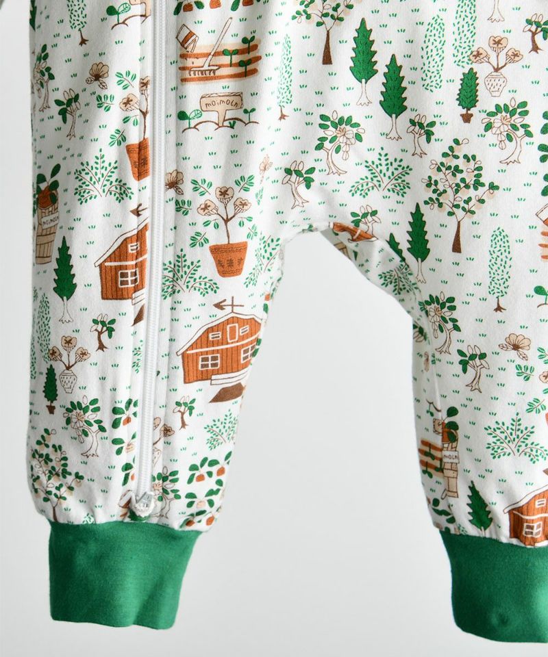 モダールコットン素材を使っており、肌触りがよく、ストレッチ性があり動きやすいロンパース。ファスナー付きなので、着脱が簡単なアイテムです。
