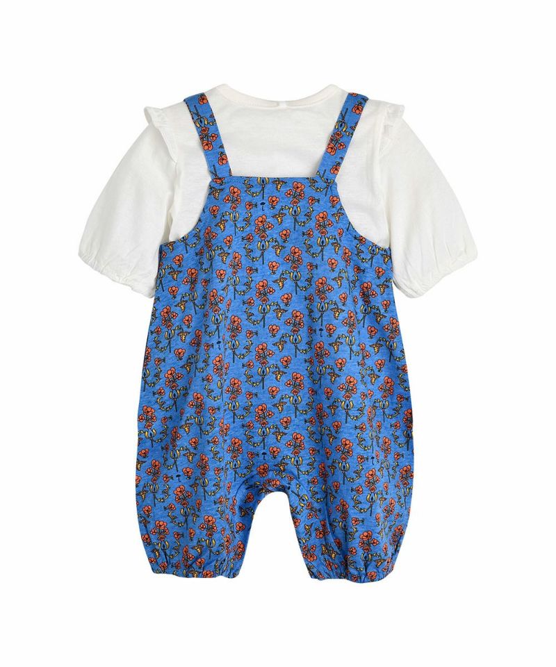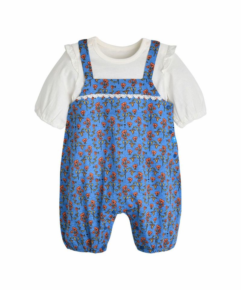 【2点セット】フリルトップス&ブルーフラワーカバーオール