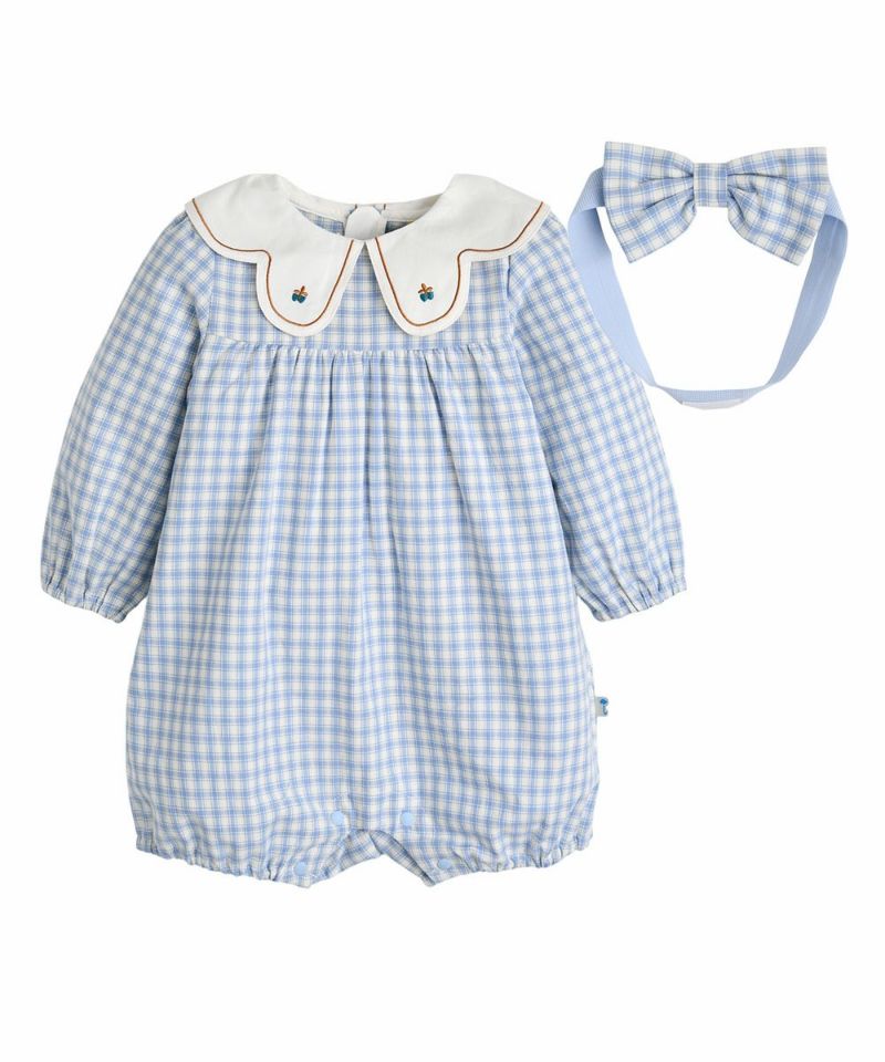 【2点セット】ブルーチェックカバーオール&ヘアバンド