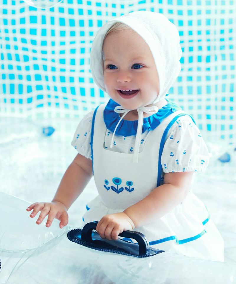 70センチ8キロちょいの小柄1歳二ヶ月の娘だが、来年も着れるようにと90サイズを購入。やはりでかいが、中のシャツはピッタリめ。エプロンは毎回肩がずり下がるが、可愛すぎるデザインなので着せてしまう。本当にかわいい。