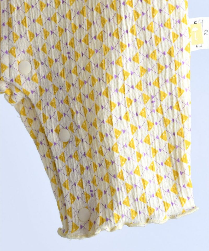 伸縮性に優れた素材を使用した7分丈ロンパース。モイモルンらしいお魚プリントに肩フリルでCuteさをプラス。着脱しやすいファスナータイプで、上まで上げた時に引手がお子様に触れないように生地でカバーしています。ベビーギフトとしてもおすすめです。