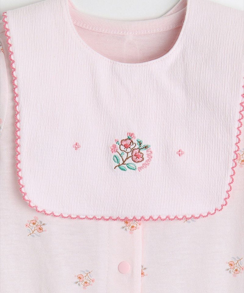 半袖ロンパースと花柄の刺繍がアクセントになったスタイの2点セット。吸湿性と放湿性に優れ、肌が敏感な赤ちゃんにおすすめの柔らかいモダールレーヨン素材を使用。ベビーギフトとしてもおすすめです。